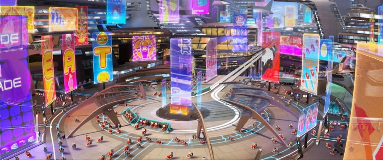 인간이 깨어있는 채로 장기간 우주 여행을 하려면 더욱 대담한 상상력이 필요하다. 디즈니의 애니메이션 <월-E>에 등장하는 지구탈출 우주선 엑시엄은 호화 유람선 개념으로 디자인되었다. 그 크기는 수 마일에 달하며 수십만 명이 동면이 아니라 멀쩡하게 깨어 우주 여행을 즐기고 있다. 수시로 항구에 정박하여 보급을 받는 대형 크루즈선에 비해, 모든 것을 자체 완결적으로 싣고 가야 하는, 주변의 어떤 배후 공급지와도 단절된 거대 우주선이 공기, 식량, 식수를 순환시키면서 쾌적한 생활을 유지한다는 것은 애니메이션에서만 허용될 수 있는 상상일 것이다.