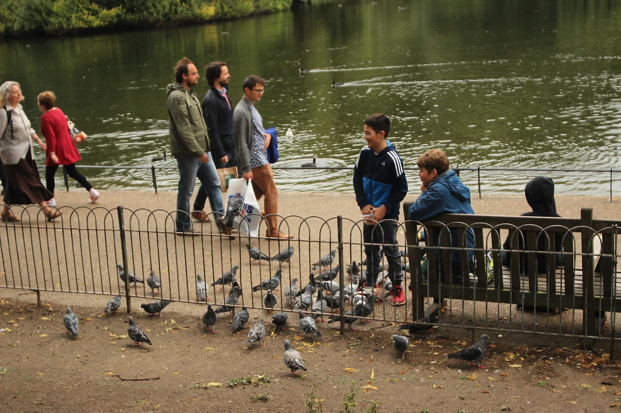 영국 날씨가 자기 마음대로라는 이야기는 블로그에서 종종 보았긴 했지만 이렇게 맑은 하늘에 비를 뿌릴지는 몰라서 너무 당황스러웠지만 다행히 나와 같이 비를 피하는 사람들이 있어 그 틈에서 잠시 휴식을 취했다. 잠시 뒤 비가 그치는 것을 보고 근처 마트에서 샌드위치를 하나 사서 세인트 제임스 파크로 향했다.