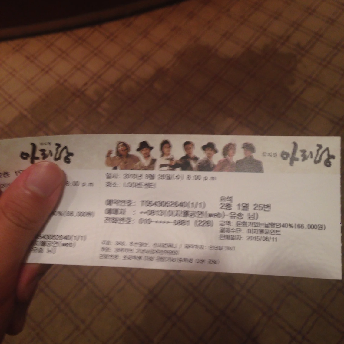 문화가 있는 수요일의 힘을 빌어 뮤지컬 아리랑을 관람했다. 2층 맨앞줄 가격이 단돈 66,000원! 이런 문화혜택은 더 늘어날수록 좋다.