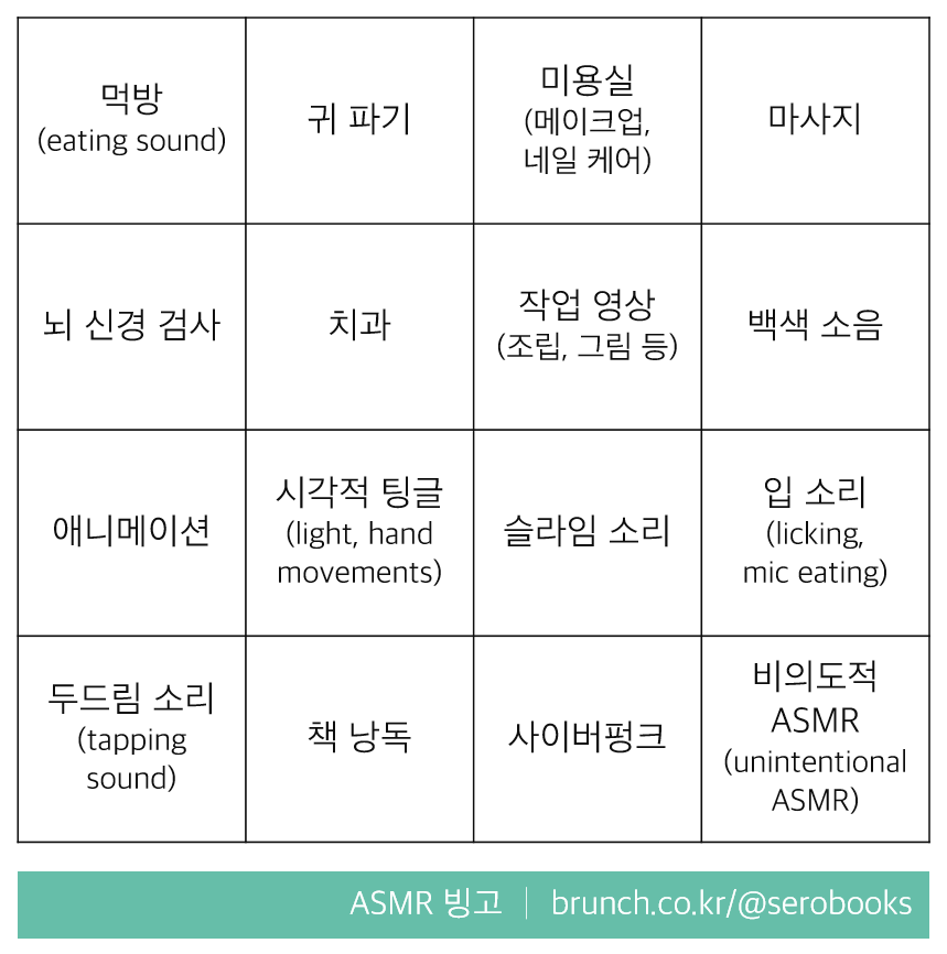 그래서 준비해 봤습니다, ASMR 취향 빙고.