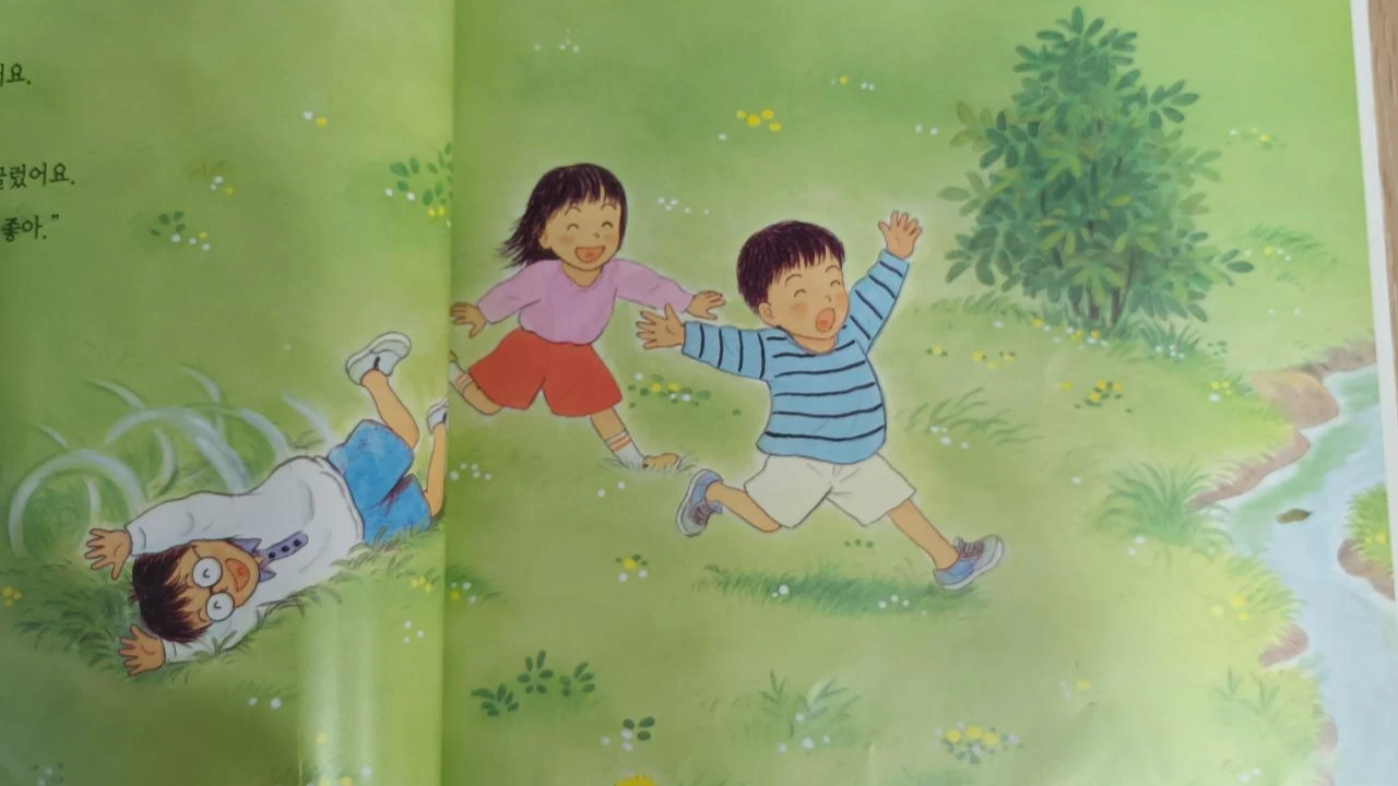 동산에서 뛰어놀던 사진을 구하기 힘들어 동화책 속 그림으로 겨우 대체함.