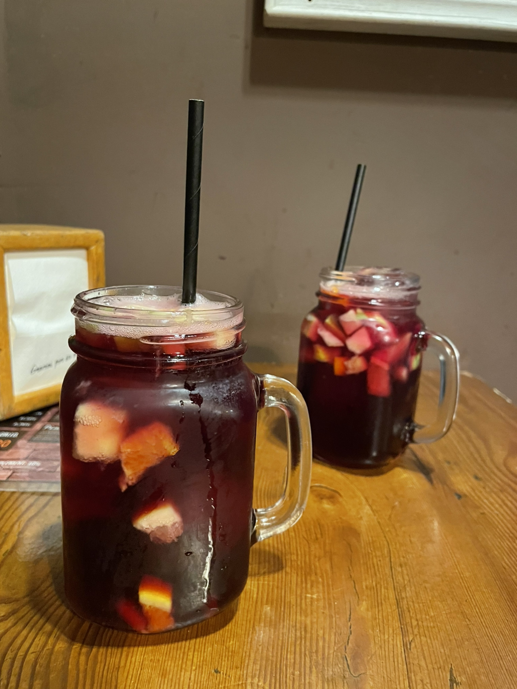 한국도 그렇지만, 스페인도 인기맛집은 언제나 사람이 많다. 음식점 앞에 기다리는 현지인들도 많았지만 회전율이 좋아 금방 가게에 들어갔고 음식을 주문하기 전에 스페인은 항상 음료를 먼저 주문을 받는다. 남편과 나는 음식과 어울릴 만한 음료를 주문하고 타파스를 골랐다. 한국에서는 보지 못했던 여러 종류의 타파스를 보니 신기했다. 모양으로 봐서는 재료가 뭔지 모르는 것 같은 건 점원에게 물어보기도 했는데 역시나 못 알아듣겠는데도 알아듣는 척 우리는 웃으며 주문을 했다. 샹그리아에 타파스를 맛있게 먹고 여행 첫날을 마감하기 위해 몬주익 언덕의 분수쇼를 보기 위해 갔다.