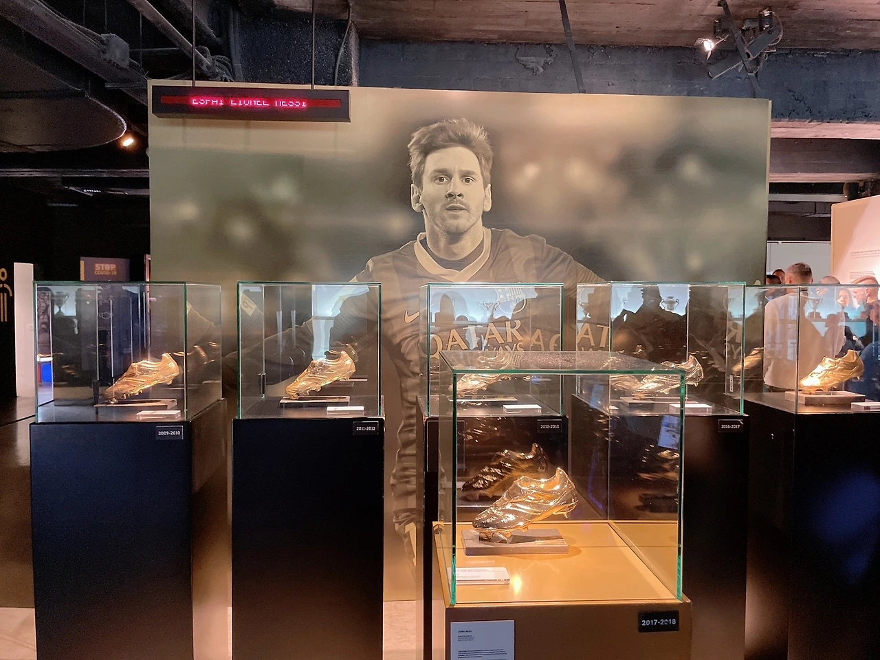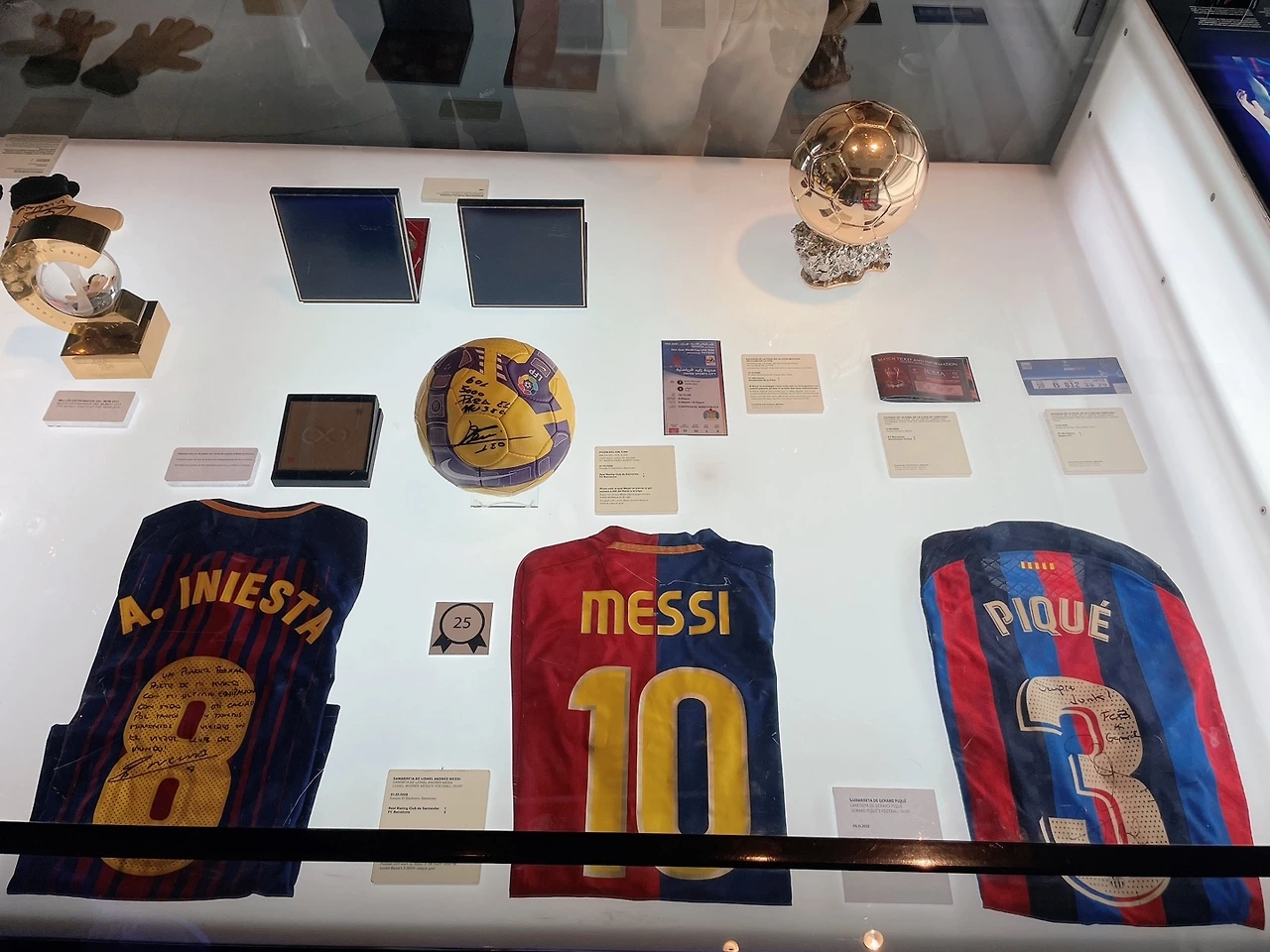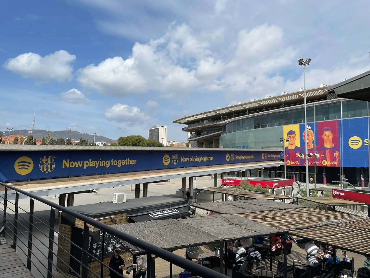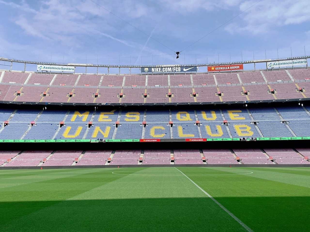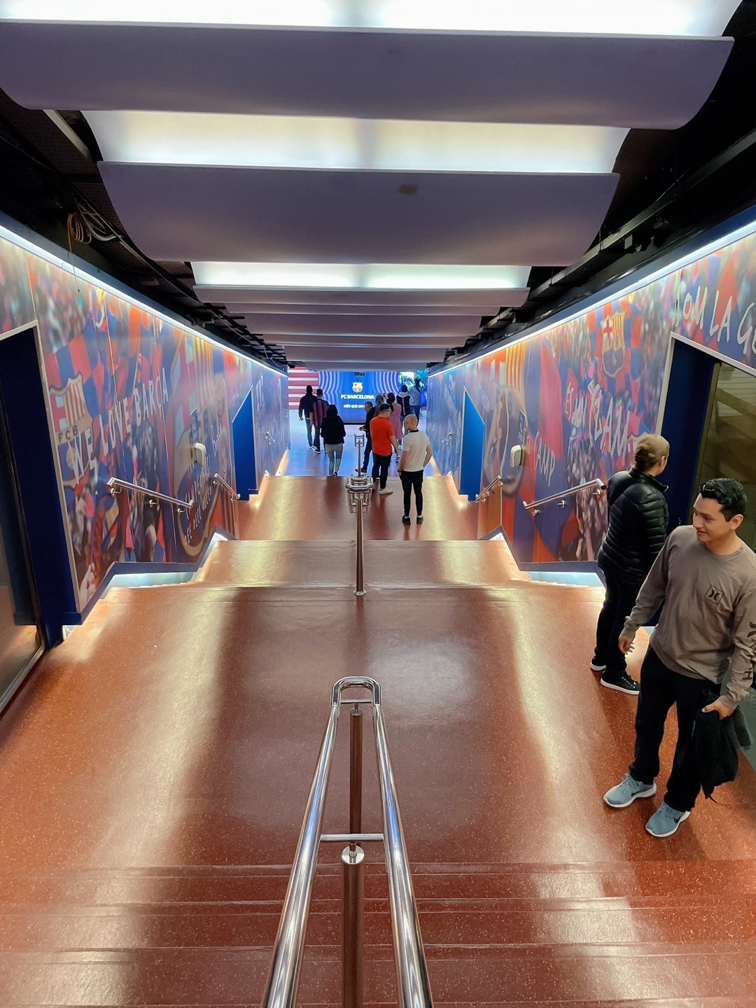 이때쯤부터인가.. 내가 급격히 몸이 피곤해지고, 힘들어지기 시작했던 거 같다. 긴 비행시간 후 제대로 쉬지 못하고 움직이는 게 몸에서 얼마나 부대끼는지를 알게 되었다. ‘그래도 여기까지 왔는데 열심히 구경해야지.’ 경기장 내부 관람을 위해 안으로 들어갔는데 정말 많은 사람들이 관람을 위해 줄을 서 있었다. 와.. 스페인 사람들이 얼마나 축구를 사랑하는지 그 짧은 시간에 느낄 수 있었다. 경기장 관람 티켓은 미리 예매를 해놨었기에 줄만 서서 바로 바코드를 인식해서 들어갔고, 경기장 내부를 관람하는데 도움을 주는 오디오 가이드를 대여했다. 나와 피부색도 머리색도 다른 사람들이 내 사방으로 서있다는 게 신기하기도 하고 낯설기도 했다. 먼저 구단 내에 박물관은 FC바르셀로나 구단의 역사에 대해 알려주고 그동안 구단이 받아왔던 상에 대해서 쭉 전시를 해놨는데 정말 엄청 많았던 거 같다. 그중에 당연 제일 인기는 메시였고, 메시사진이 있는 곳은 언제나 사람들이 사진을 찍기 위해 줄을 서 있었다. 긴긴 줄을 따라 박물관을 구경하고 나면 캄푸누 경기장 내부를 관람할 수 있게 동선이 잘 짜여있었다. 경기장을 보러 밖으로 나가니, 탁 트인 엄청 큰 규모의 경기장이 파란 하늘과 한눈에 들어왔다. 피곤하기도 하고 힘들었던 몸이 시원해지는 느낌이 들었다. 선수들이 직접 경기를 하는 곳. 뭔지 모를 웅장함 같은 것도 느껴졌고, 나는 빈 경기장의 투어를 온 거였지만 실제 경기를 할 때, 어떤 모습일지 조금은 상상이 돼서 가슴이 두근대기도 했다.