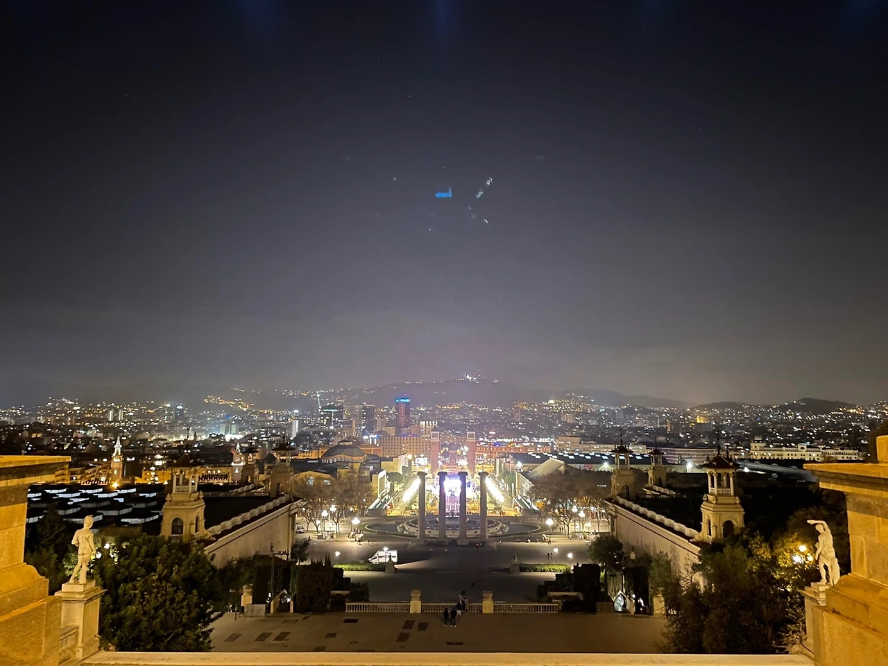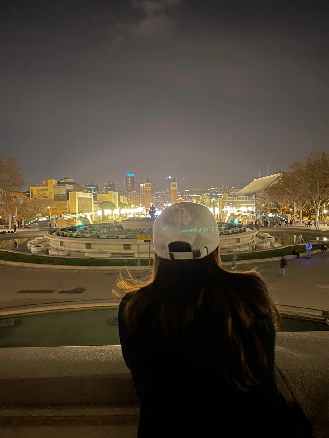 여행 전부터 몬주익 분수쇼는 저녁엔 꼭 가봐야 한다고 해서 목, 금, 토 저녁 8시부터 9시까지 한다고 했기에 우리가 도착한 토요일에 꼭 가서 봐야 하는 스케줄이었다. 스페인에 여행 온 낭만을 제대로 즐기러 가야지. 분수쇼 시간보다 조금 늦게 도착하긴 했지만, 사람이 곳곳에 아직도 분수대를 바라보며 앉아있었기에 우리도 주변에서 막 사진을 찍다가 자리를 잡고 기다렸다. 기대함을 갖고 다려도 분수쇼는 나오지 않았다. 우리가 늦은 건가. 괜한 아쉬움에 자리를 못 뜨고 있다가 남편과 함께 자리를 정리하며 숙소로 돌아가기로 했다. (다음 날 가우디 투어 가이드님이랑 얘기하면서 알게 된 사실인데, 지금 바르셀로나가 비가 많이 오지 않아 물이 부족해서 분수쇼는 한동안 하지 않는다는 걸 알았다. 아쉬웠지만, 그곳에 가본 것만으로도 너무 행복했기에 괜찮았다.)