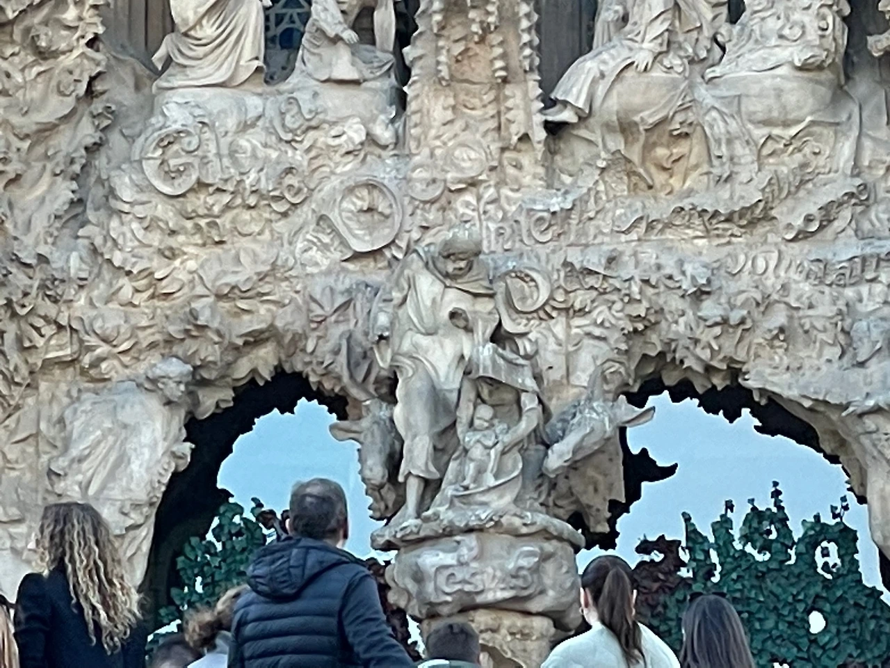 점심을 먹고 갔기에 오후에 정말 많은 사람들이 관광을 왔고, 수많은 인파 속에서도 이 사그리다 파밀리아 성당은 충분히 올 가치가 있는 곳이라는 게 느껴졌다. 2일 차 가이드 투어에서는 성당 내부로 들어가진 않고 전문 가이드분의 전체적인 설명을 듣고 남편과 나는 다음날 개인적으로 내부 티켓을 예약해서 관람하기로 했기에, 더 집중해서 가이드분의 설명을 들었다. 가우디는 신실한 신앙인이었기에 이 사그리다 파밀리아 성당 건축에 본인의 삶을 거의 다 쏟았다고 해도 과언이 아니라고 했다.