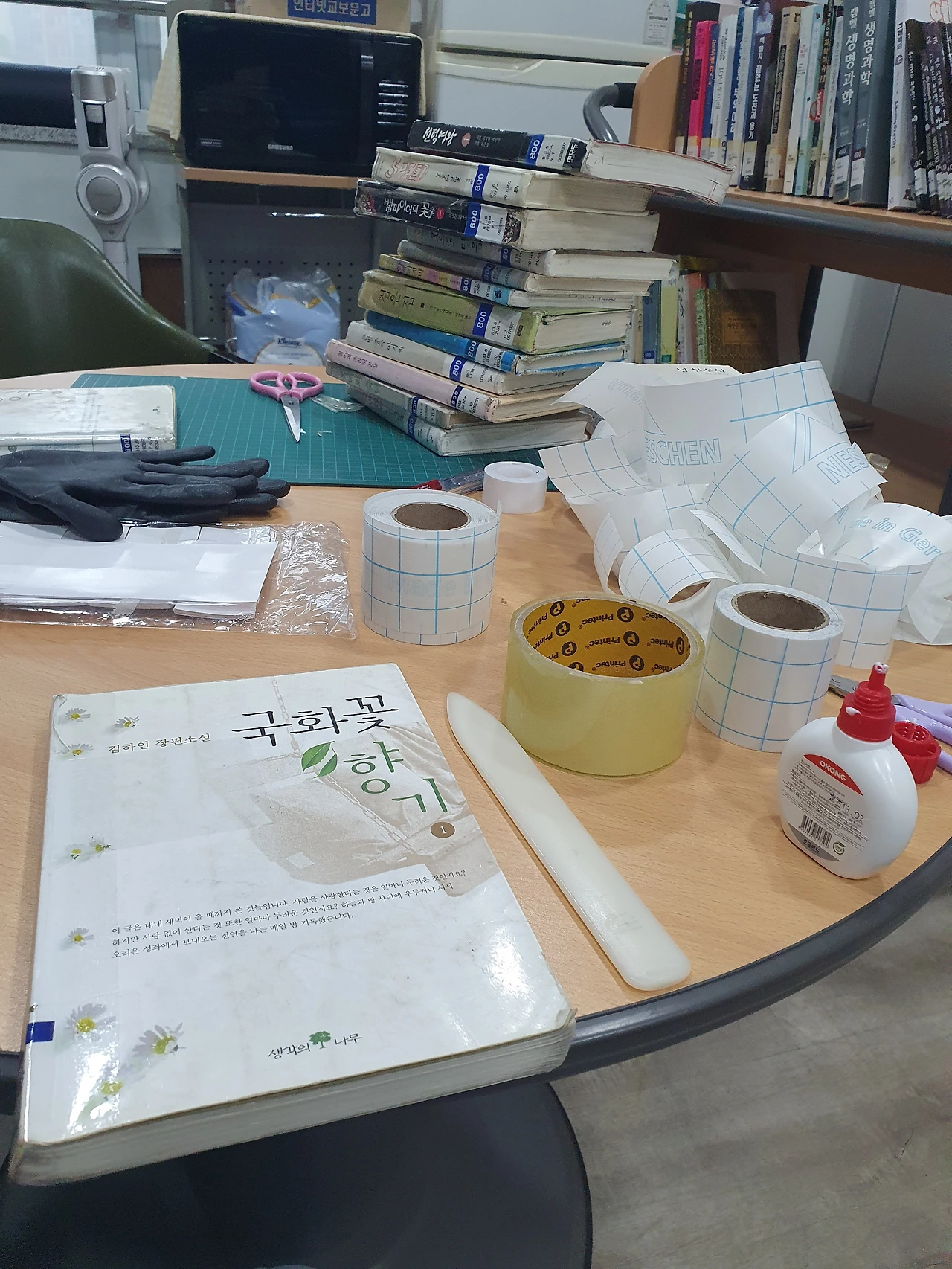 지금은 도서관 문을 닫고 장서점검 중입니다. 조용하게 재즈를 틀어놓고 낡은 책을 보수하는 시간이 이상하게 힐링이 되네요. 북적거리는 학기 중도, 문을 닫고 오래된 책들을 마주하는 일도 참 좋습니다. 특히나, 이런저런 행정과 관계에 치이지 않는 게 제일이고요. (아닌 곳도 있어요. 지금 제 위치가 그런 곳일 뿐.)