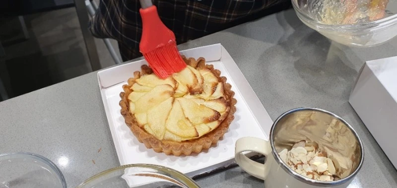 타르트에 대한 추억을 더듬어 보자면, 문화센터 강의에서 처음 성인 강의 출강 의뢰를 받았던 품목인 '노오븐 과일 타르트'가 생각난다. 오븐을 쓰지 않는, 오븐 없이도 그럴듯한 베이커리를 만들어내는 주제의 수업을 꾸려보았는데, 쿠키를 부수어 녹인버터를 섞어 뭉쳐 덩어리를 만든 후 틀에 맞게 펼쳐 냉장고에서 굳혀 타르트지로 사용한다. 기호에 맞는 크림을 짜서 넣고 제철과일을 올려주면 오븐 없이도 근사한 과일 타르트를 만들어 낼 수 있으니 베이킹에 도전해 보고 싶은 분들에게 딱 좋은 수업이기도 했다.
