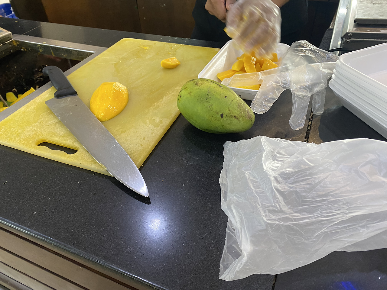 한국도 과일 손질해 주는 서비스가 있긴 하지만 백화점에서나 봤고 여긴 마트에서도 뚝딱 손질해서 팔아주니 너무너무 좋았다. 길리에서 망고를 처음 먹은 후 거의 매일 망고를 찾아다니면서 꼭 구입을 했다. ^^