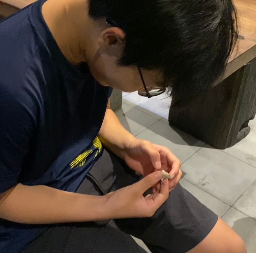 그러다가 야밤에 핫도그를 먹고 싶다길래 같이 나가 숙소 앞에 있는 핫도그가게에 가서 포장 주문을 하고 기다리는데 낮은 천장 위로 보이는 도마뱀들... 아이는 소리를 내지는 못하고 너무 좋아 미친 듯이 웃어대더니 잡으면 넣을 통이 필요하다고 해서 내가 후다닥 숙소에 가서 미리 준비해 둔 통을 가지고 오니 잡기 시작!