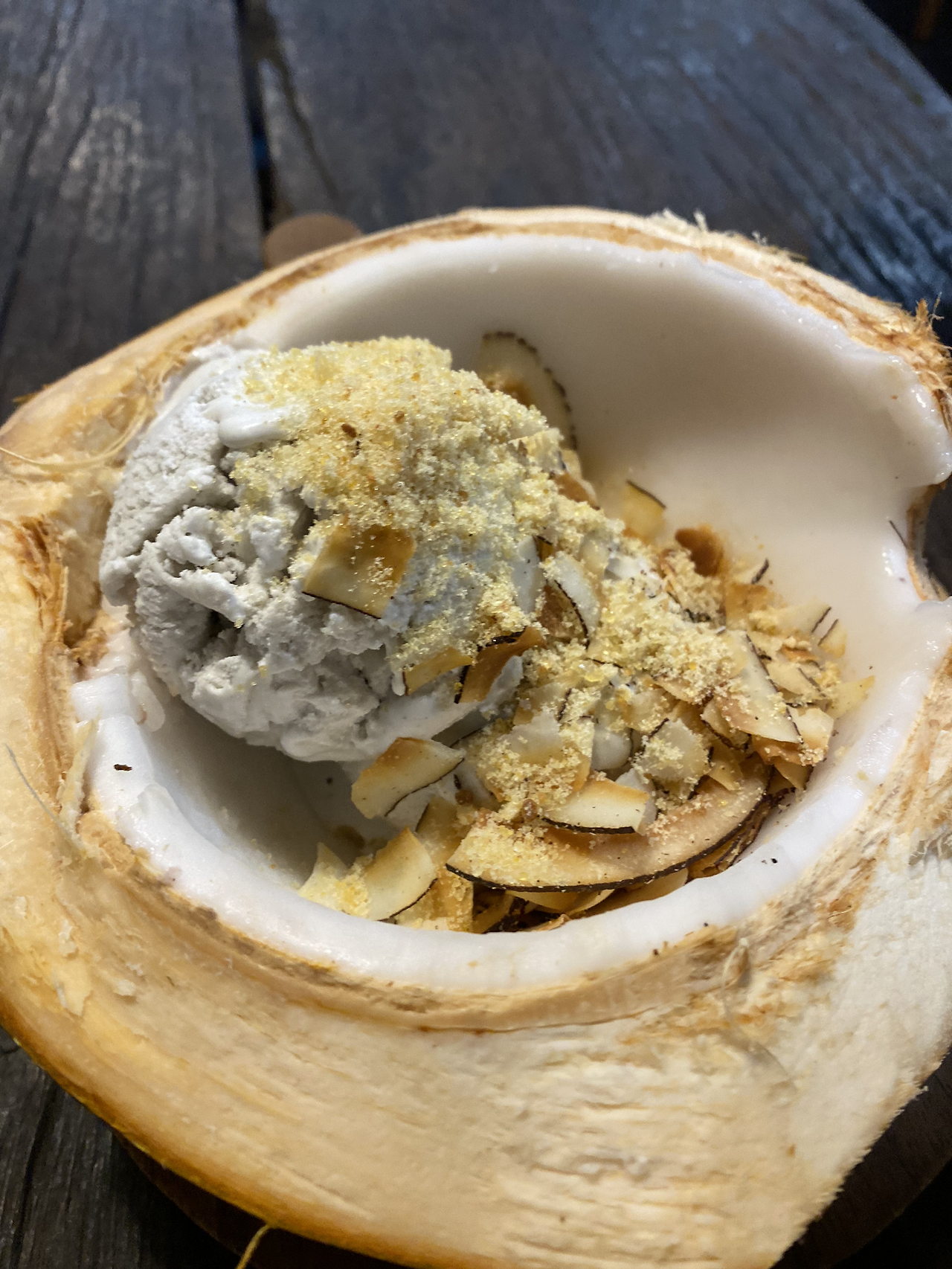 작년 말부터 빗질을 하면 머리카락이 우수수 떨어지는 걸 보고 식겁해서 탈모약이라도 사달라며 조르고 있는 아이에게 코코넛이 좋다고 남편이 말하니 그때부터 아이가 매일 한, 두통씩을 환장하고 먹었는데 빈땅마트에는 비닐로 깔끔하게 포장되어 있는 코코넛이 신기해서 두 통이나 사 와서 수영할 때 틈틈이 마셨다.