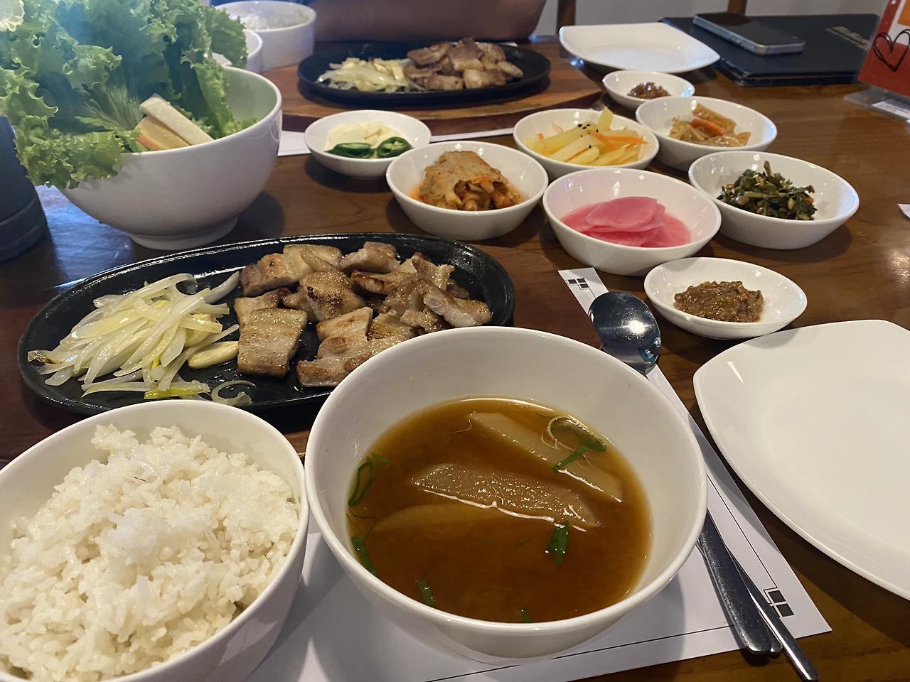 그렇게 숙소로 돌아와 건너편에 있던 한식집에 가서 삼겹살 3인분은 주문했는데 한 접시에 고기가 모두 나오면 아이가 흡입할 것 같고 추가로 더 주문하기엔 한 끼 식사로 비쌌기에 한두 점 맛만 봐야 하나... 했는데 웬걸!!! 1인분씩 밥과 국, 고기까지 한상차림처럼 나와서 우리 셋 모두 발리에서 만족한 식사가 되었고 그때 또 비가 억수로 많이 내려 우비 입고 우기를 제대로 느끼며 미친 척 돌아다닌 날이었다. 컨디션도 회복되고 새와 도마뱀도 실컷 보고 삼겹살도 든든히 먹은 아이는 우리와 함께 마트도 동행하며 발리에서의 마지막 지역을 누렸다.