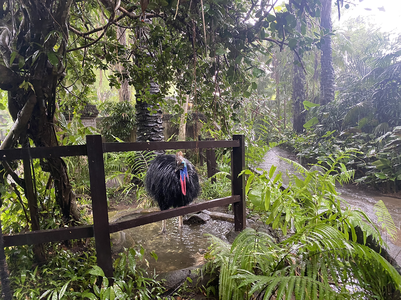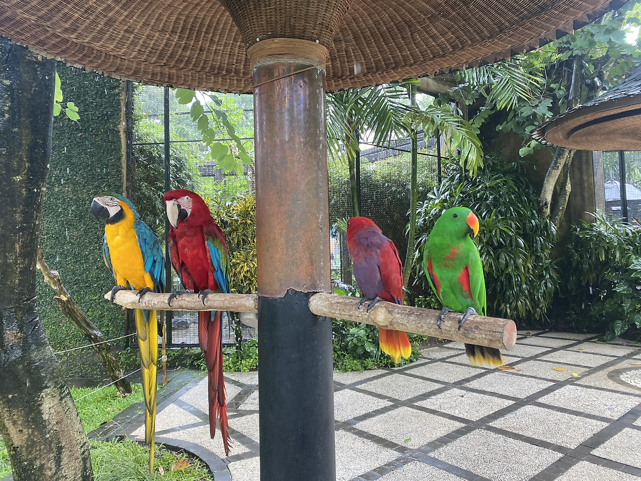 새 공원 도착하기 3분 전부터 내린 비는 입장료를 끊고 들어가자 미친 듯이 퍼부었다. 또다시 아이의 표정은 어두워졌고 20~30분 정도 내린 비지만 우리 부부가 느끼기는 2~3시간 온 듯했다. 다행히 입장할 때 아이가 좋아하는 앵무새들이 가까이에서 있었고 비가 억수같이 내리니 뭐 짜증을 낸들 아이도 어찌할 수 없었던 터라 비가 그치기만을 기다렸다.