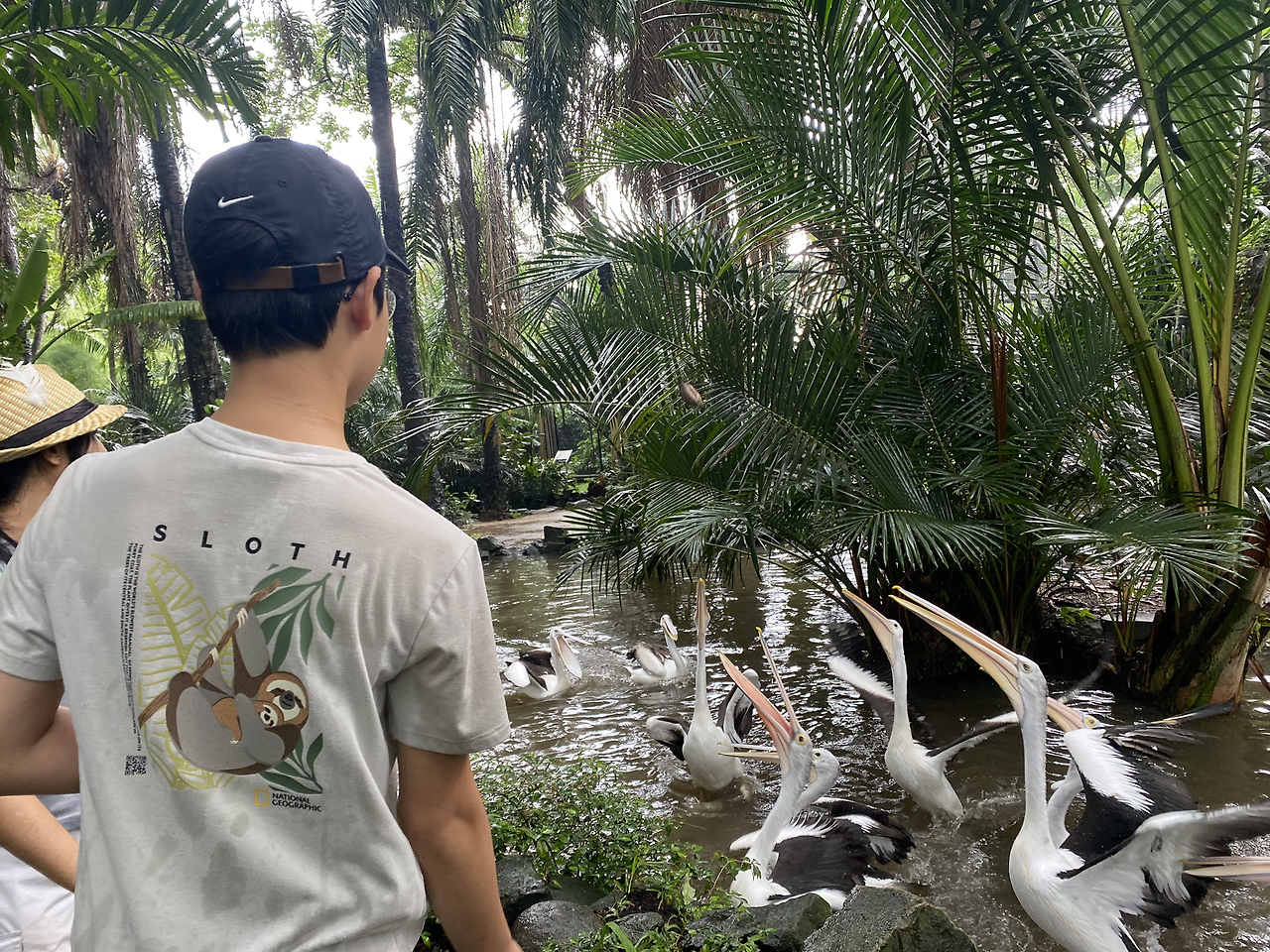 드디어 비가 슬슬 그쳤고 갑자기 비가 오는 것이 흔한 일인 듯 여기저기 우산이 비치되어 있어 쓰고 다녔다. 그곳은 아이의 마음을 훔치기 아주 좋은 곳이었다. 경계 없이 다니는 새들도 있었고 특이한 새들도 많았으며 펠리컨에게 먹이 주는 것도 아이가 꽤나 좋아했다. 다만 규모가 너무 작아서 비를 피해 기다린 것보다 더 빨리 관람을 끝낸 느낌???^^;;;