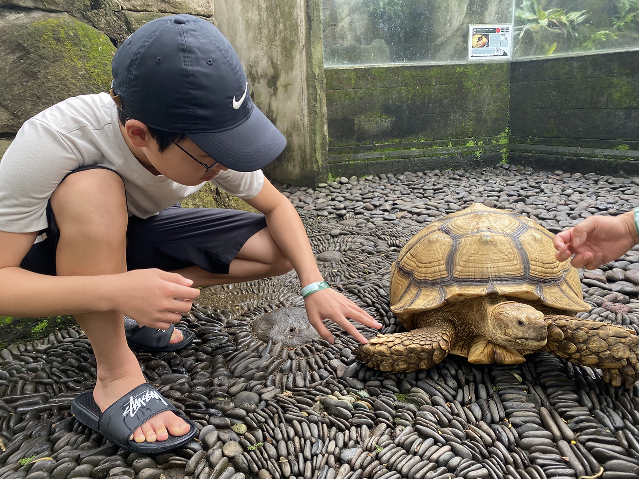 우리 가족에게 파충류공원을 안내해 줄 가이드라면서 어떤 남자 직원분이 말을 거셨고 우리는 끄덕끄덕거리며 따라갔다. 가이드분은 쉼 없이 이야기하셨지만 사실 우리는 눈치껏 알아듣고 표현했을 뿐.. 우리의 반응이 적절했는지도 사실 의문이었지만 그 가이드분은 오히려 한국어도 섞어 쓰면서 우리를 파충류공원에 빨려 들어가게 하고 있었다.