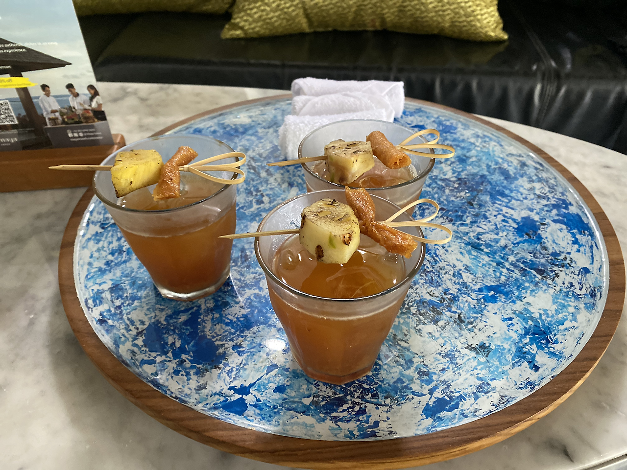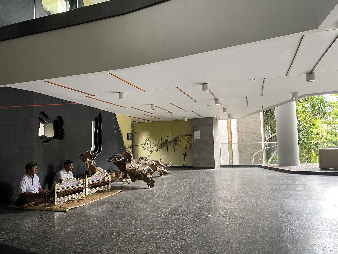 짐은 벨보이(?)분들께서 옮겨주겠다며 챙겨주셨고 우리는 로비로 갔다. 발리의 전통악기로 라이브 연주가 들려오고 앉아 있으면 안내해 주시겠다고 했다. 두 남자는 여기저기 로비를 둘러보고 있었고 나는 웰컴 음료를 받아 마시고 있었다.