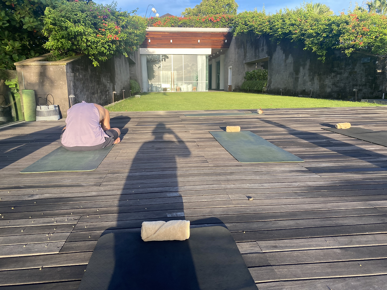 나는 새벽같이 일어나 미리 예약해 둔 아침 요가를 하러 나갔다. 뜨거운 태양아래에서 다른 나라 사람들과 함께하는 요가... 물론 발리식 영어라 더 못 알아듣기도 했지만 눈치껏 옆 사람 따라 하며 내 살을 지글지글 태웠다.