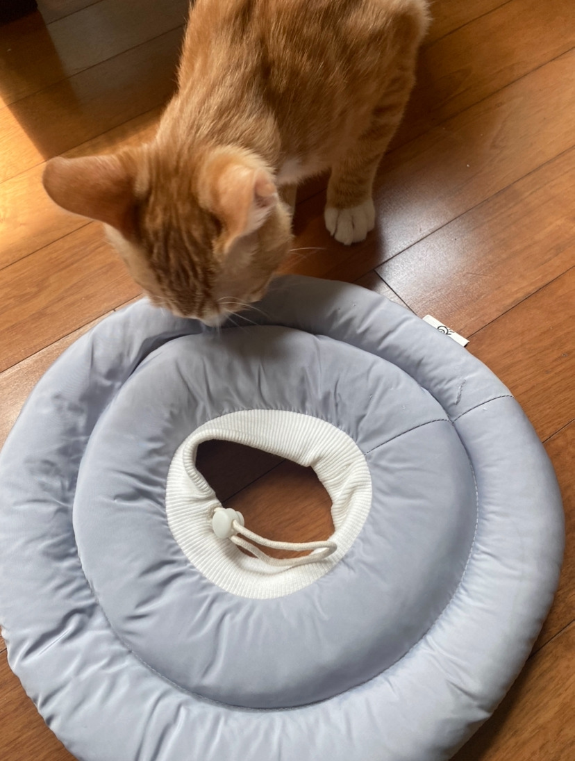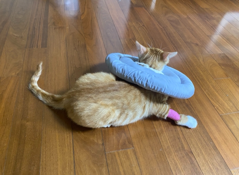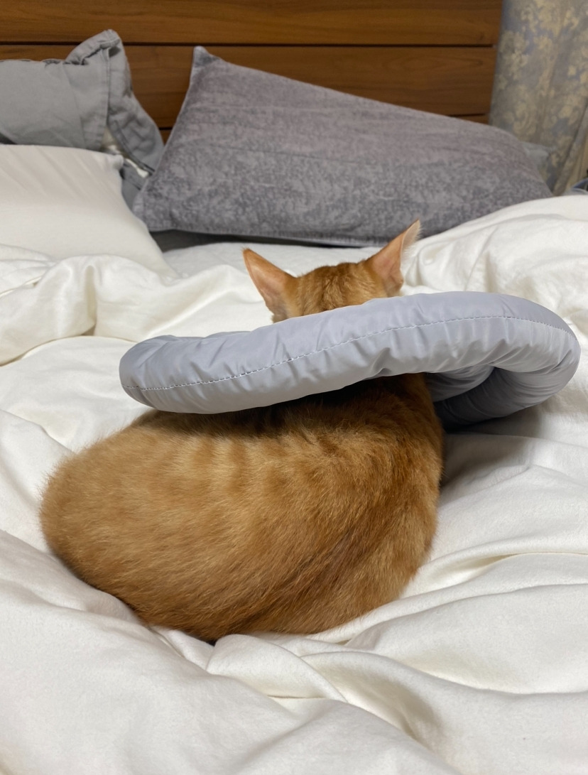 일주일 동안 넥카라 하고 있으랬는데... 집에 오자마자 이러면 어떡하지 망고야?