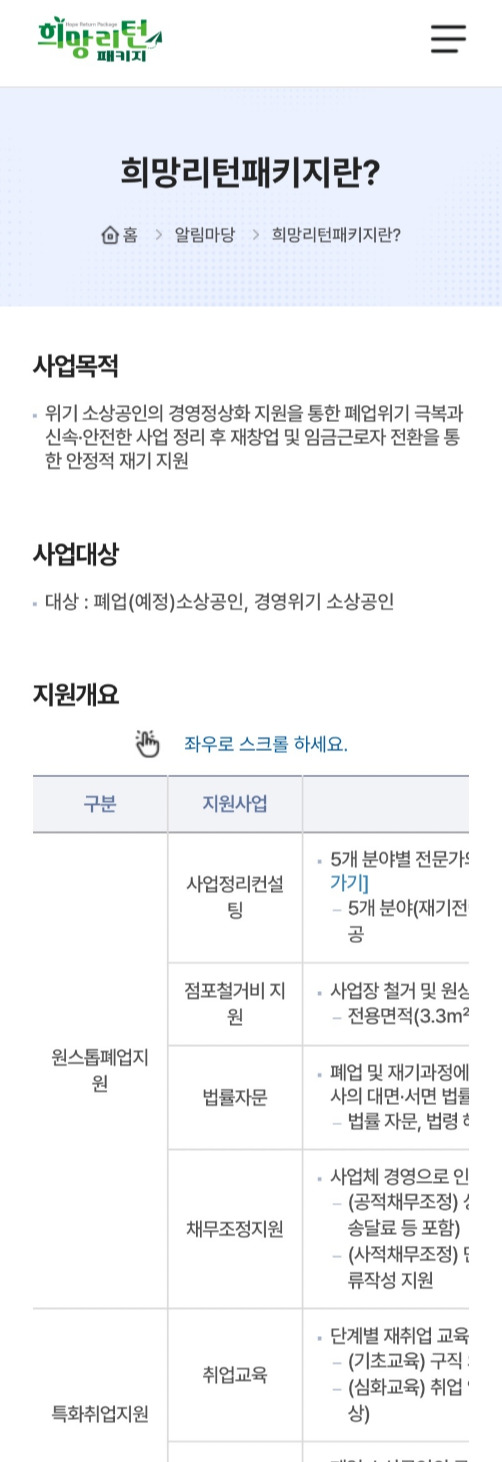 그 사이 난 재취업 온라인 교육도 받았고 희망리턴패키지 사이트를 뒤적이다 보니 '2024년 희망리턴패키지 재창업 사업화 지원, 소상공인 모집 공고'가 있었다.