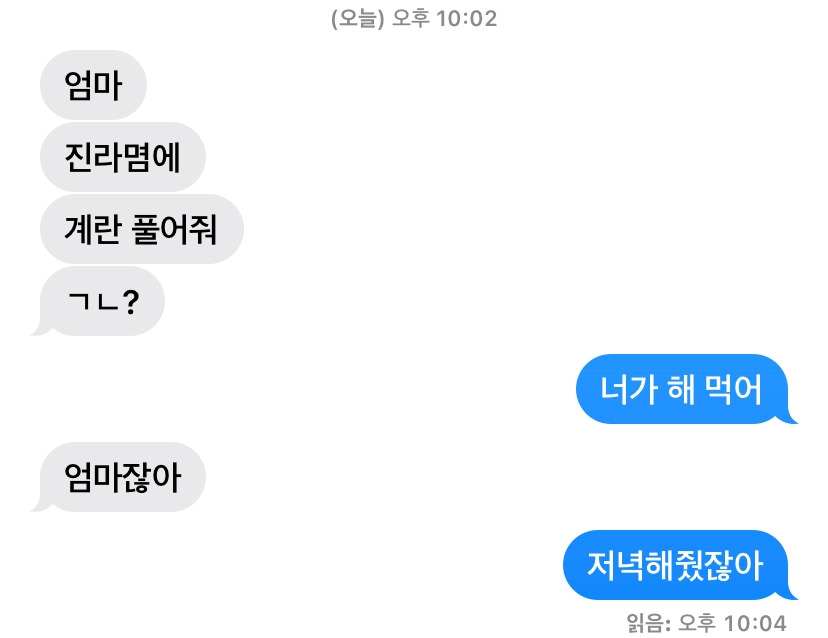 ‘너가 해 먹으라고’ 보냈더니 ‘엄마잖아’라는 답변을 보고 잠시 흔들렸지만 학교에서 돌아오자마자부터 게임만 하고 있는 녀석에게 일하고 오자마자 집안일하고 이제야 잠시 한숨 돌리는 내 휴식을 뺏기고 싶지 않았다.