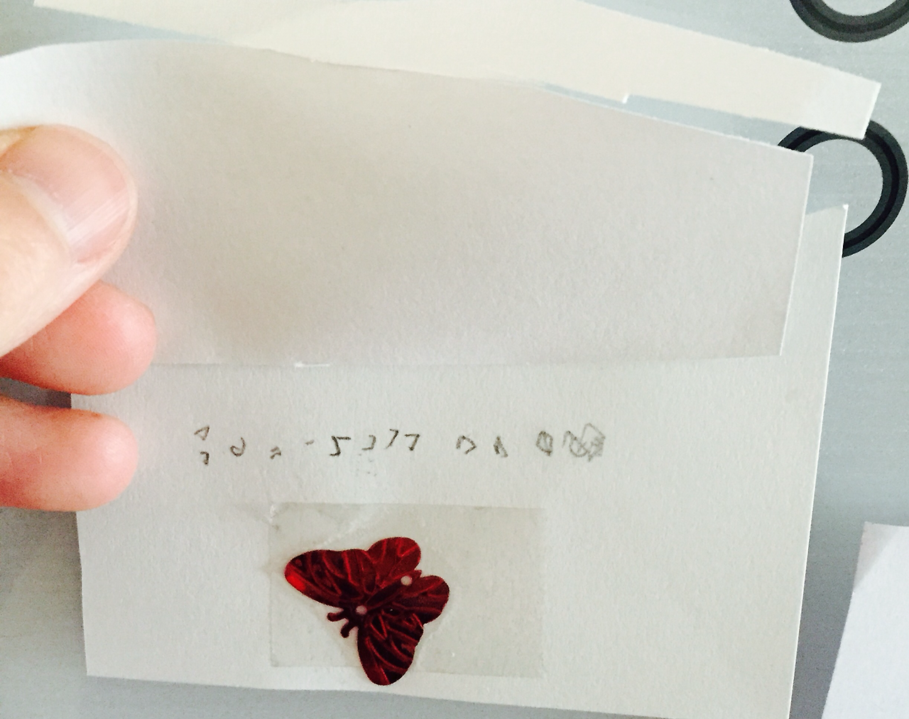 그 녀석이 처음으로 편지라고 써 온 것이 위 사진이다. 알 수 없는 문자지만 나름 편지지를 만들고 글자라고 생각한 것들을 적고 나비 스팡클 하나 붙여주는 저 센스!!!