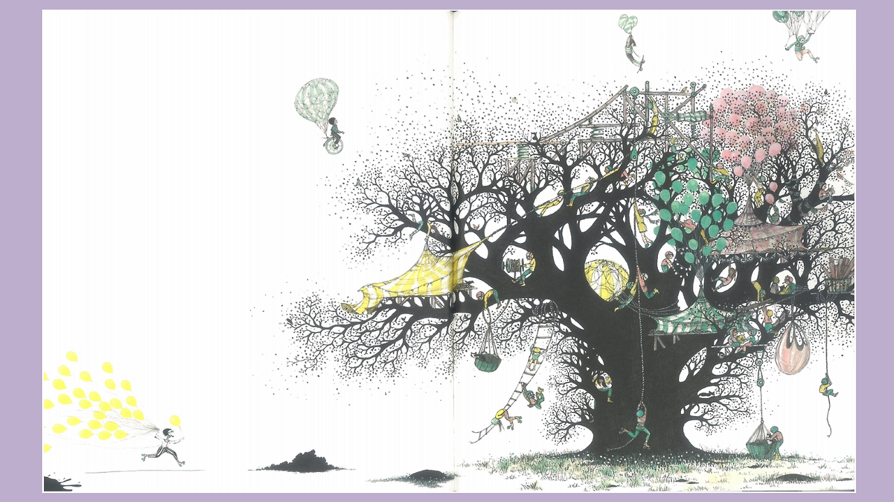 실수라고 생각했던 일을 만회하려 노력하는 시간동안 작은 점이었던 그림은 여러 색깔의 풍선으로 잔뜩 꾸며진 아름다운 세상을 만들어내고 있었고, 혼자였던 아이는 친구들을 만나 풍선을 타며 신나게 놀 수 있게 된다. 책의 말미에는 그 아지트가 한 아이의 머리에 만들어진 작은 공간임을 보여준다. 그리고 그 공간에서 노란 에드벌룬과 풍선을 타고 날아오르는 아이들의 모습을 보여준다. 아이에겐 아름다운 경험이 남았고 이제 그것은 밖을 향해, 다른 이들을 향해 확장되고 있었다.