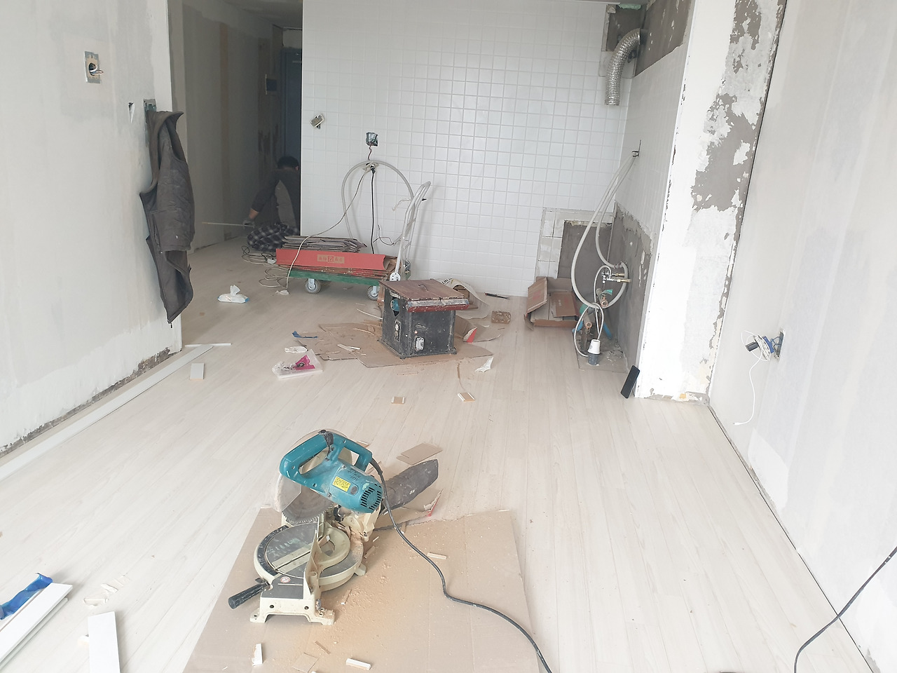 목 공정이 끝나고 마루를 시공했다. 1차로 바닥을 한 번 고르게 하기 위해서 샌딩을 하고 그 뒤에 마루를 시공하러 오신 분은 박 팀장님. 단차가 커서 고생하겠다는 내 말에