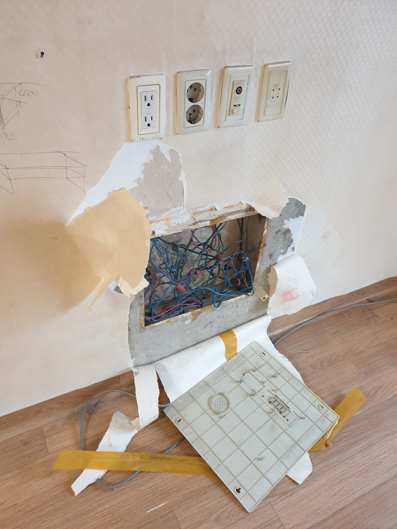 철거팀에 세탁기가 들어갈 수 있게 욕실 문을 키우고, 베란다 확장 쪽으로 콘센트와 배관을 매립하는 것을 요청드렸다. 에어컨 실외기 연결과도 미리 매립해 달라고 요청하고, 목공팀에서 콘센트 위치를 빼 놓고 단열을 할 수 있게 미리 소통였다. 인터폰 단자와 티브이 단자 처리를 위해 목공하는 중에 방문할 수 있게 일정을 잡았다.