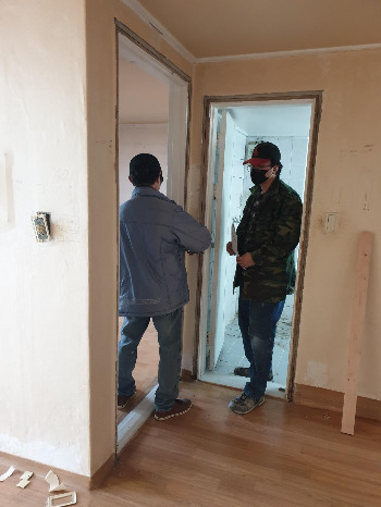 문을 제작해야 하기 때문에 철거와 설비가 진행된 후에 욕실 문 두께와 넓힌 후 욕실 문 크기 측정해서 알려드렸다. 걸레받이 시공날짜는 바닥공사가 끝나야 하기 때문에 따로 오신다고. 날짜 조정 결과 사항을 알려드렸다.