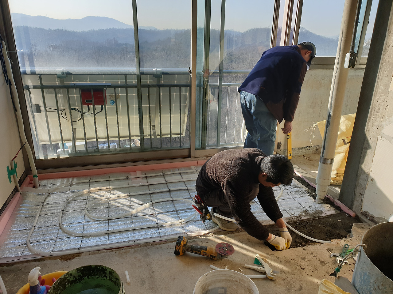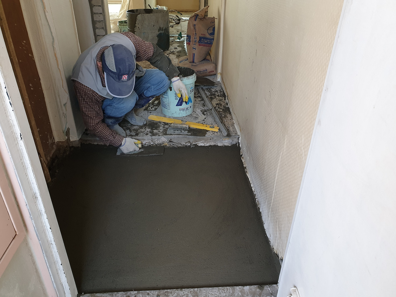 아래층 할머니의 요청도 있고 해서 욕실의 방수를 몇 번 강조해서 부탁드렸다. 나 같은 초보는 작업이 얼마나 잘 되었는지 제대로 알기 어렵다. 그냥 뭔가 아는 사람인 것처럼 구석구석 꼼꼼하게 보고, 인터넷 검색으로 미리 공부한 ‘입에 익지 않은 용어’를 써가면서 잘 부탁한다는 말을 반복하는 수밖에. 강 과장님은 그런 나의 어설픈 요청에 베란다의 난방 엑셀 관도 촘촘히 감아 주시고 이중 새시를 고려해서 창호의 턱도 충분한 넓이를 확보하면서 공사를 진행해 주셨다. 강 과장님의 실력은 그다음 타일작업에서 확인할 수 있었다. 욕실의 구석구석 꼼꼼하게 방수처리를 하고, 젠다이도 깔끔하게 시공이 되어 타일 작업이 수월했다는 타일 사장님의 평가에 과장님께 감사하는 마음이 더욱 커졌다.