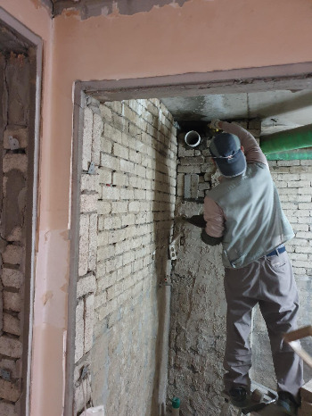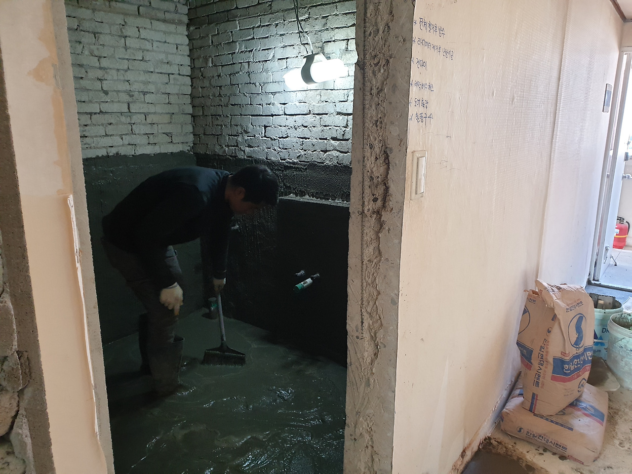 1. 베란다 엑셀 배관, 2. 욕실 방수 몰탈 3. 욕실 보일러 연결 중