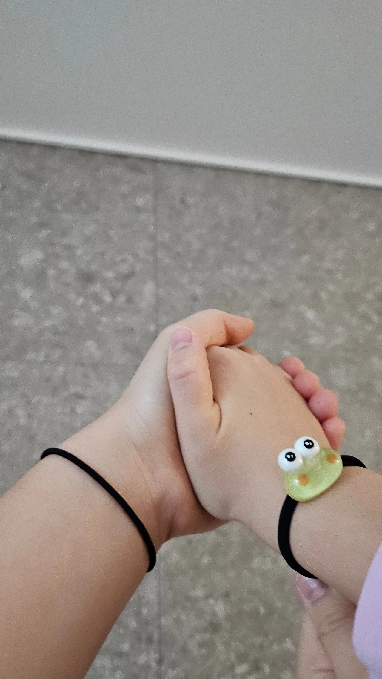 손목에 예쁜 고무줄을 차며
