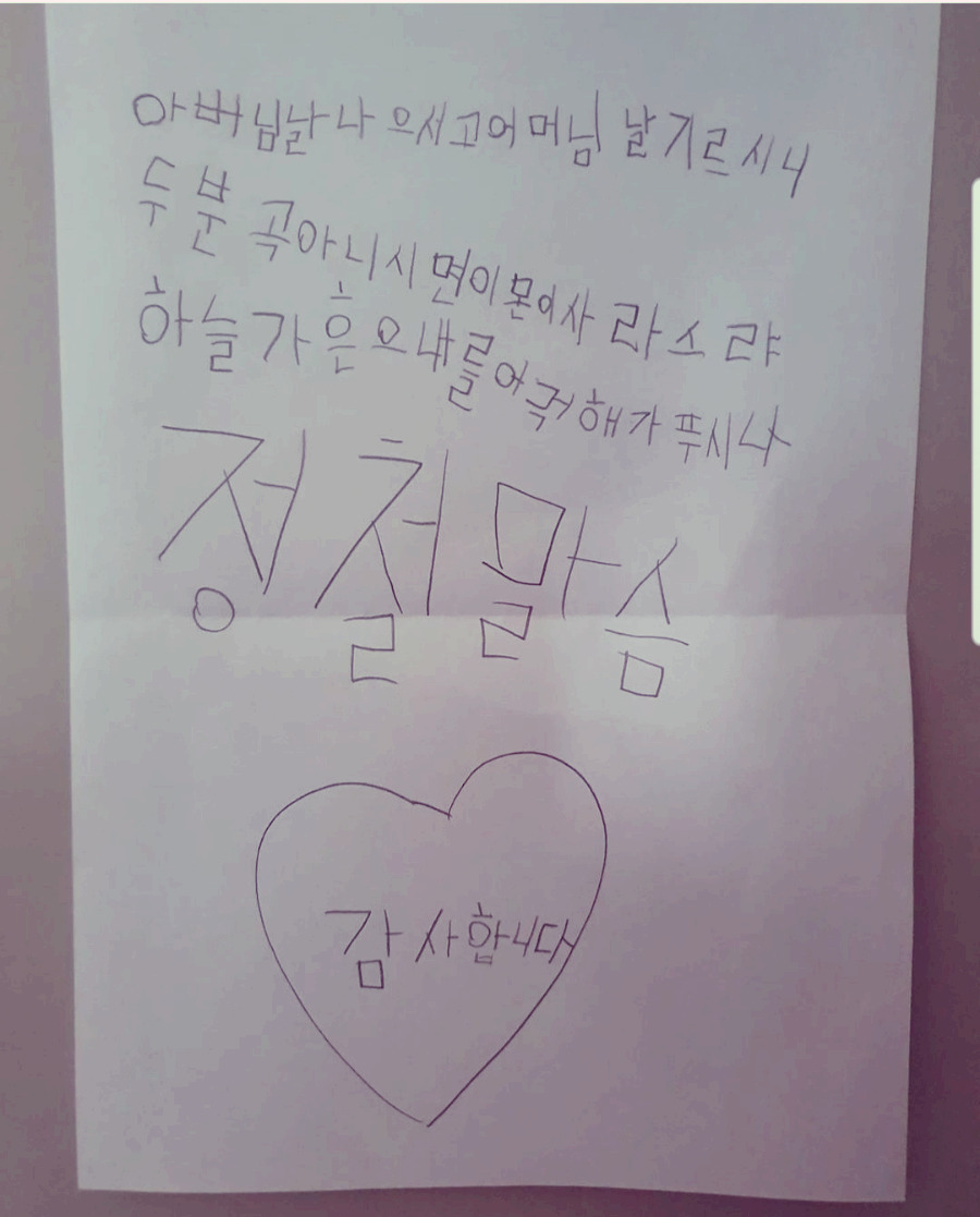 다음 생에 두 분의 엄마가 되어 갚을 수 있도록 해 주소서.'