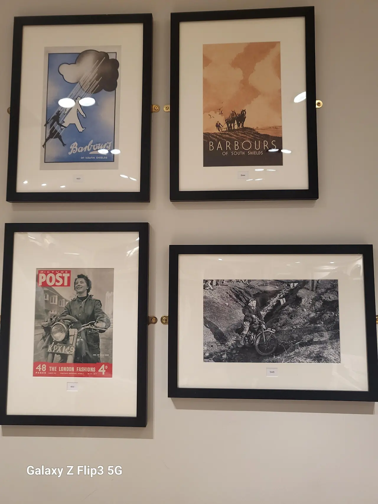 딸들이 옷을 볼 때 나는 포스터를 봤다. POST라고 적혀있는 포스터에 보면 1951년 우리나라는 6.25로 피난짐 쌀 때 런던 아줌마들은 레인코트 입고 바이크를 탔다니 옥스퍼드 대학생들과 성균관 유생들의 차이만큼 위화감이 들지만 바버는 비바람이 많았던 영국의 날씨에 맞는 생존템이었기 때문에 신자부로 한프의 가방천만큼 거친 원단에 소매나 목 주변에는 코르덴을 대서 대를 물려 수선해서 입는 옷이 된 것이다.