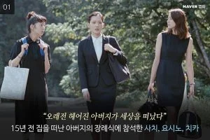 15년 전 가족을 버리고 집을 나간 아버지의 장례식에 참석하는 세 자매의 모습이다.