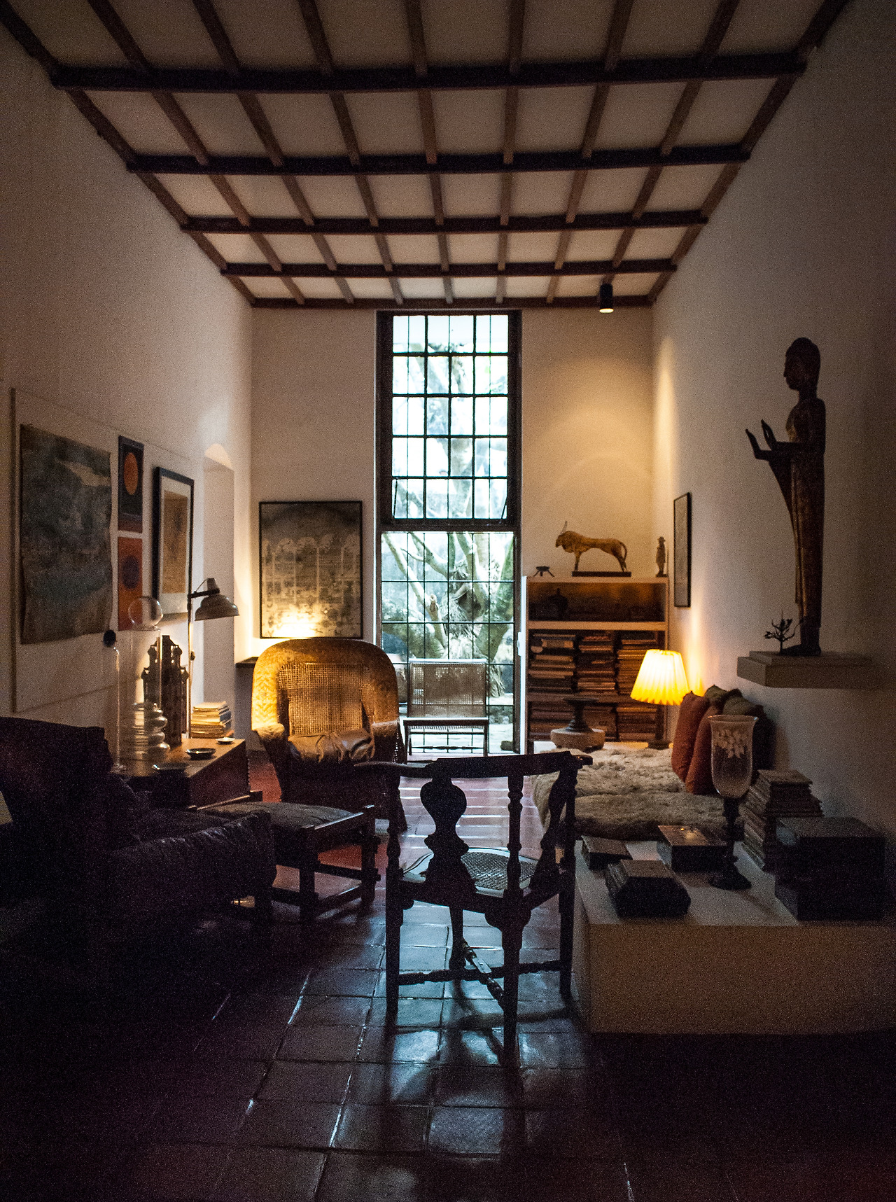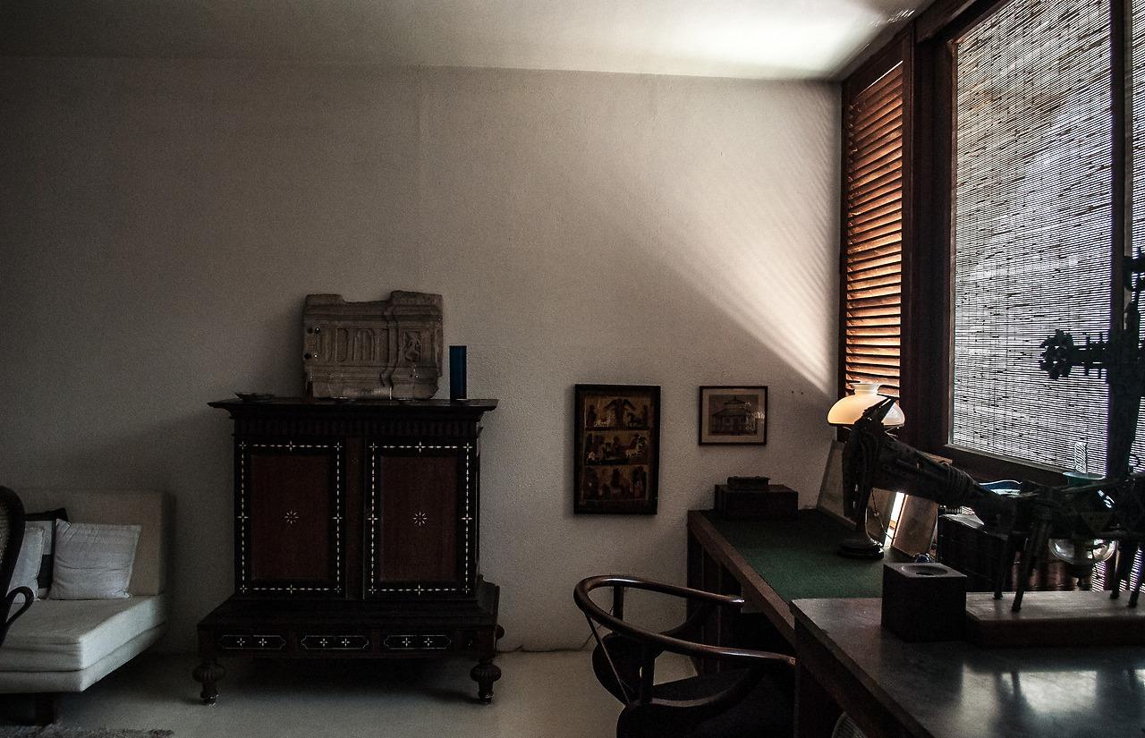 오로지 한 사람을 위한 붙박이장 같은 책방, 인도에서 물 건너 온 나무 기둥, 선반 위에 놓인 조각품, 햇빛이 닿지 않는 곳에 둔 조명, 어느 곳에 있어도 한 낮의 빛 한줄기를 조망할 수 있는 공간들 앞에 놓인 의자와 탁자는 그의 삶이 어떠했을 지를 생각하게 만든다.