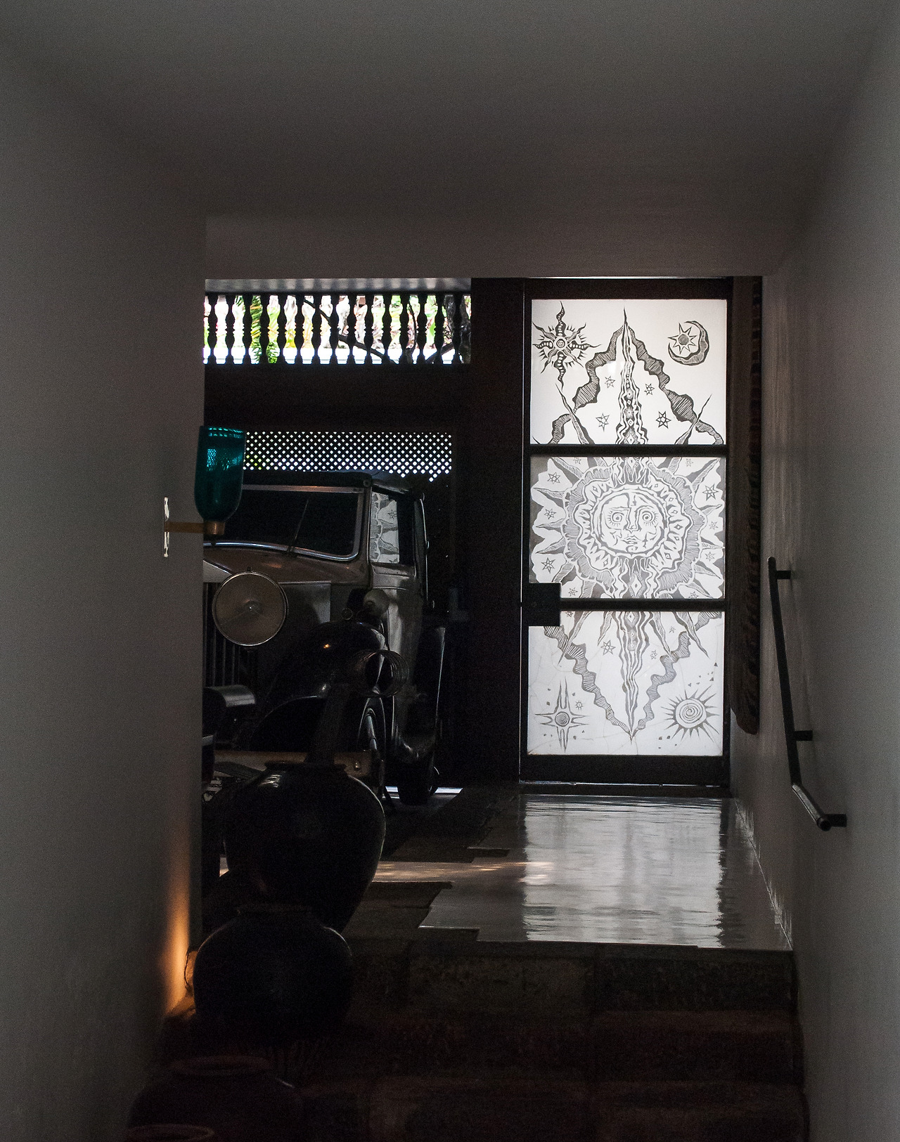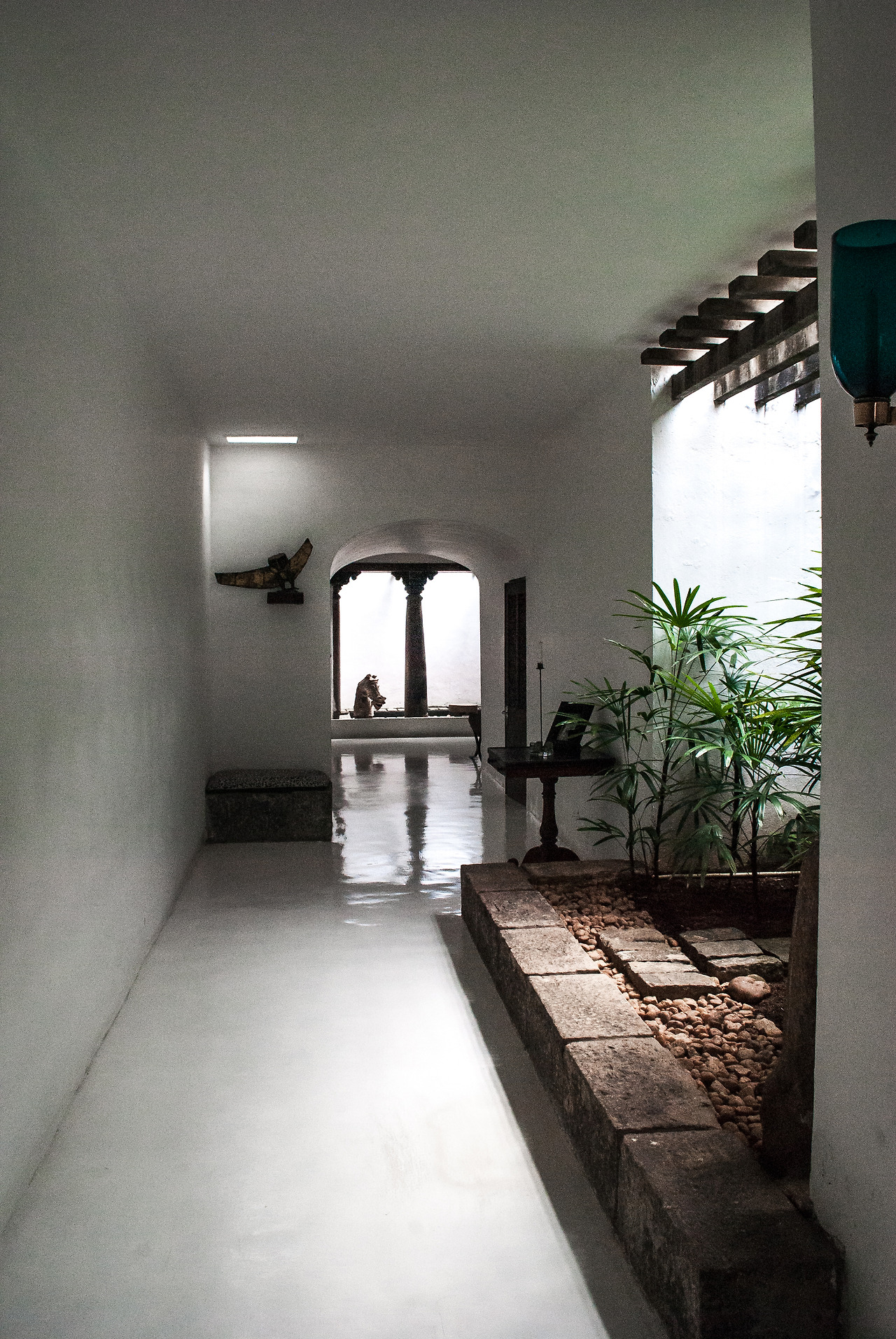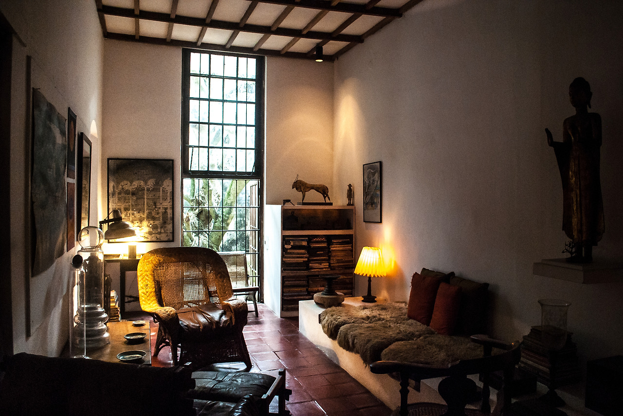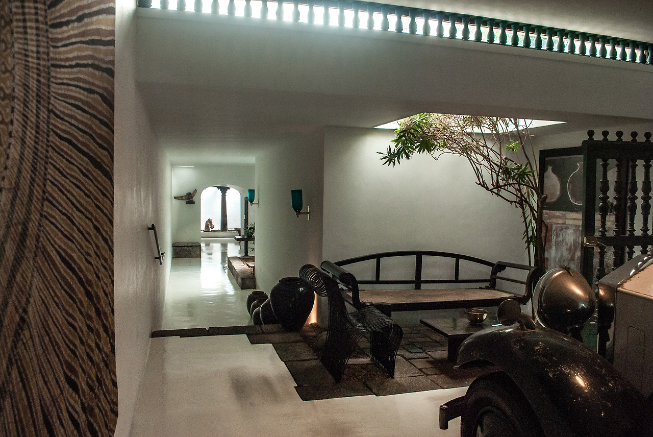 독특한 태양 문양을 그려 넣은 유리 현관문 옆에는 바와가 생전 그렇게나 좋아했던 템플트리(Temple Tree) 나무가 덩그러니 자라고 있었다. 주변의 고급스러운 빌라들 사이에서, 바와의 집은 으리으리한 자태보다는 '이게 건축가의 집이요.'라는 포스를 뿜어내고 있었다. 그러니까 겉 모습만 딱봐도 그냥 '이집에 그집이구나'라고 느낌이 왔다. 그리고 집의 초인종 버튼을 눌렀다. 잠시 기다리니 낮잠에서 막 깨어난 부스스한 눈을 가진 남자가 문을 열어주었다.