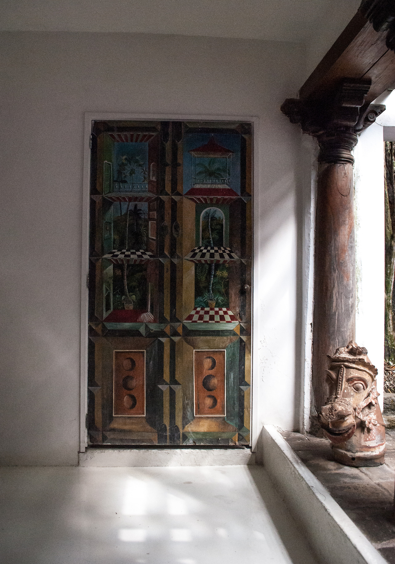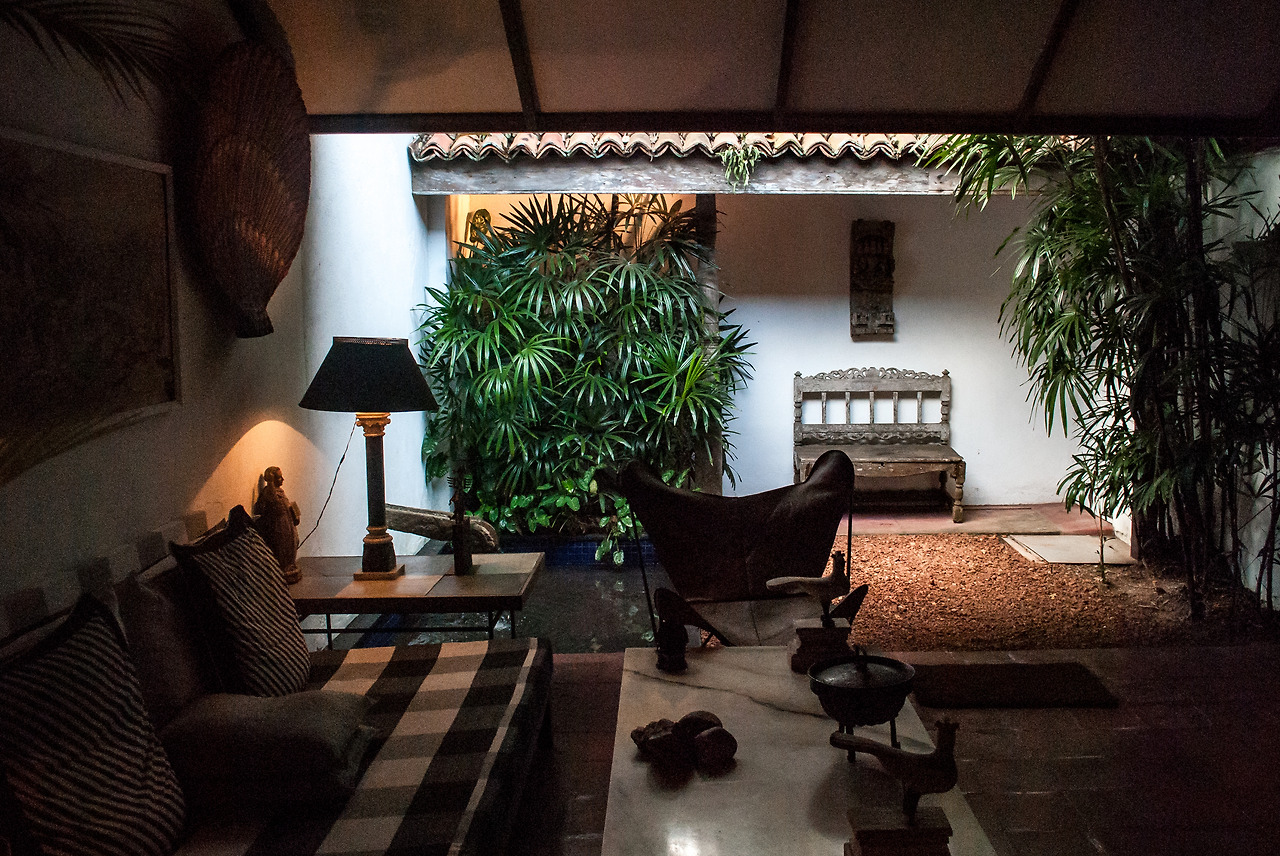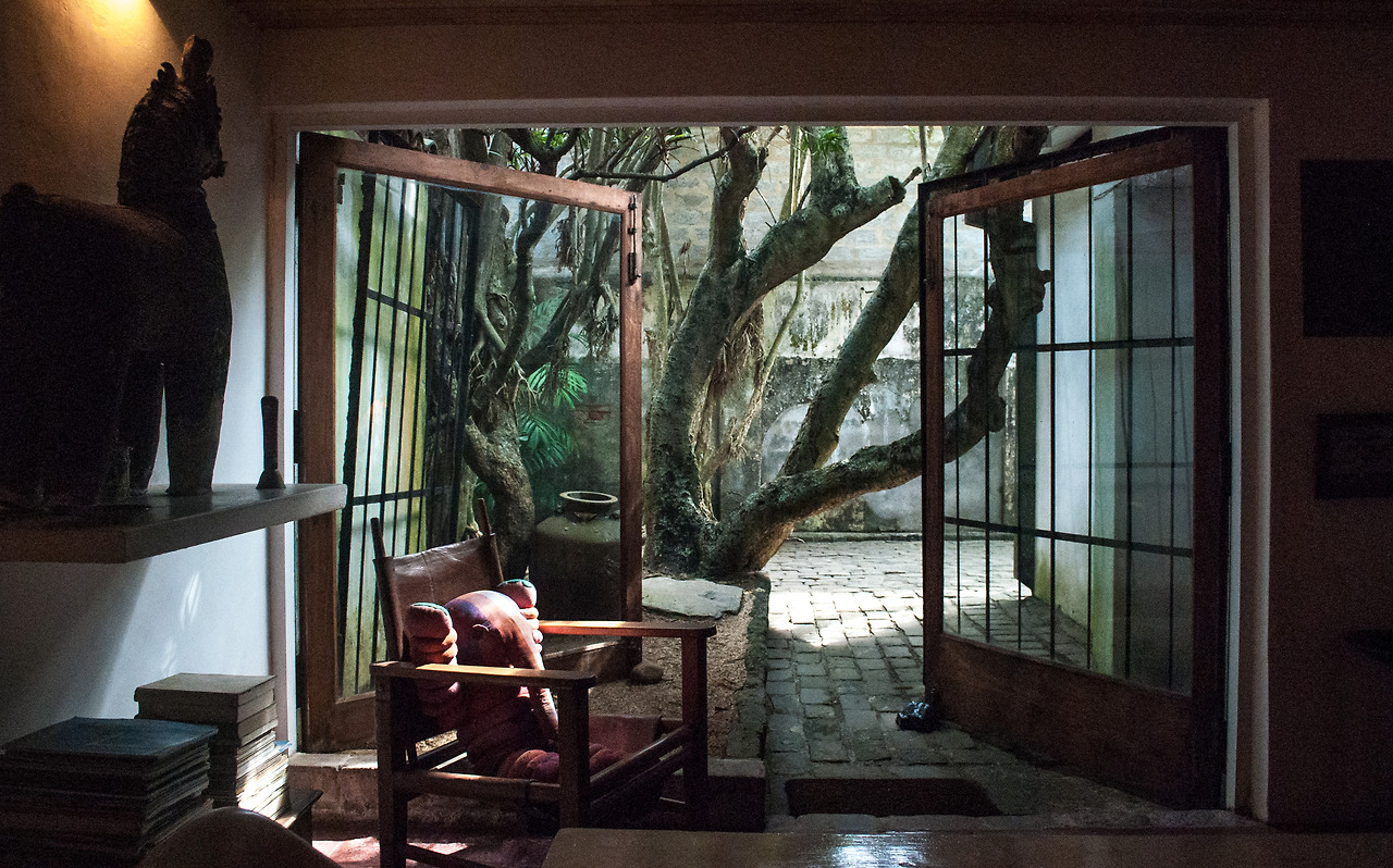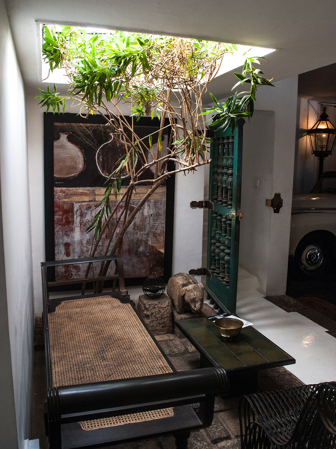 독특한 태양 문양을 그려 넣은 유리 현관문 옆에는 바와가 생전 그렇게나 좋아했던 템플트리(Temple Tree) 나무가 덩그러니 자라고 있었다. 주변의 고급스러운 빌라들 사이에서, 바와의 집은 으리으리한 자태보다는 '이게 건축가의 집이요.'라는 포스를 뿜어내고 있었다. 그러니까 겉 모습만 딱봐도 그냥 '이집에 그집이구나'라고 느낌이 왔다. 그리고 집의 초인종 버튼을 눌렀다. 잠시 기다리니 낮잠에서 막 깨어난 부스스한 눈을 가진 남자가 문을 열어주었다.