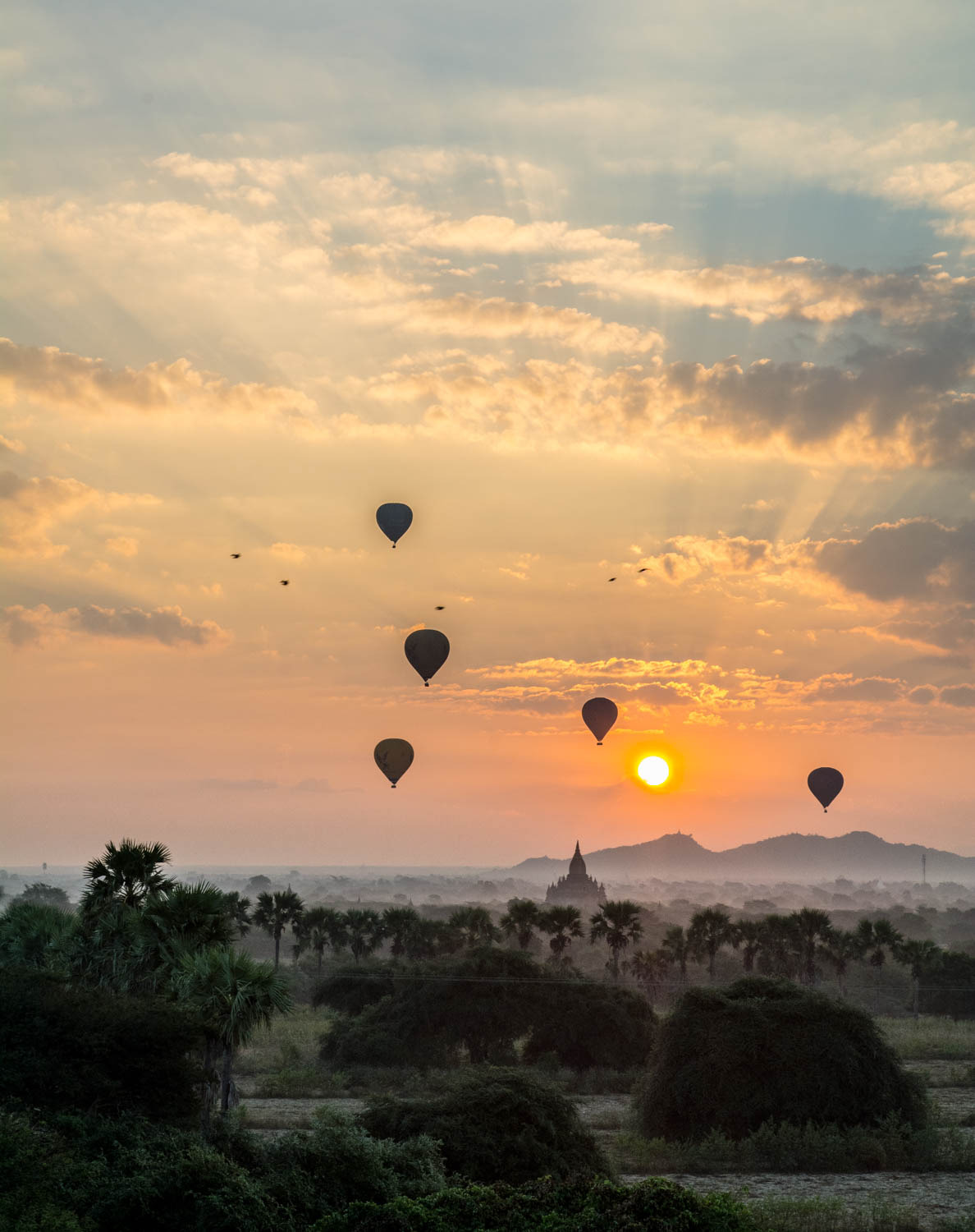 바간의 일출은 참 아름다웠다. 뜨는 해를 주변으로 가벼이 떠 가는 열기구는 순간의 아름다움을 더한다. 사람들은 일출을 보기 위해 허둥지둥 그리고 어설프게 잠에서 깬 얼굴과 여러 방향으로 뻗친 머리를 뒤로 하고 바이크를 타고 여기저기 최적의 장소를 물색한다. 바간에는 2천 여개의 파고다가 있지만 그중에 일출이나 일몰을 보기에 적당한 높이로 올라갈 수 있는 파고다는 4~7개가 전부다. (더 찾아보면 더 있을지도 모를 일이다.) 우리도 그들과 함께 평소 최고로 게을러지는 시간인 새벽에 잠을 뒤로하고 일출 장소를 찾기 위해 여기저기 헤매다 한 곳으로 왔다. 그리고 새벽의 차가운 공기를 들이쉬며 해가 뜨길 기다렸다.
