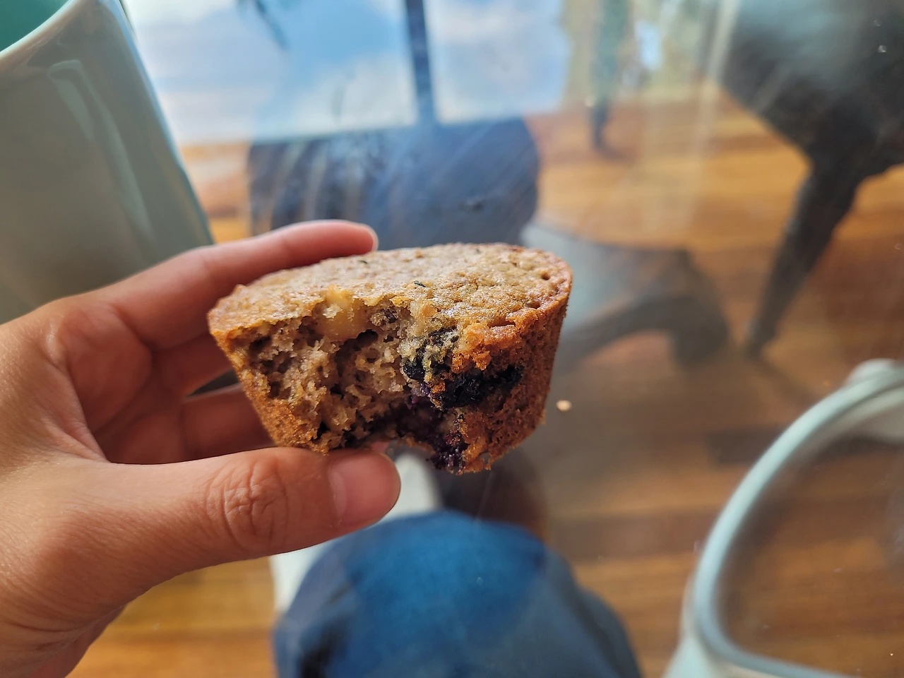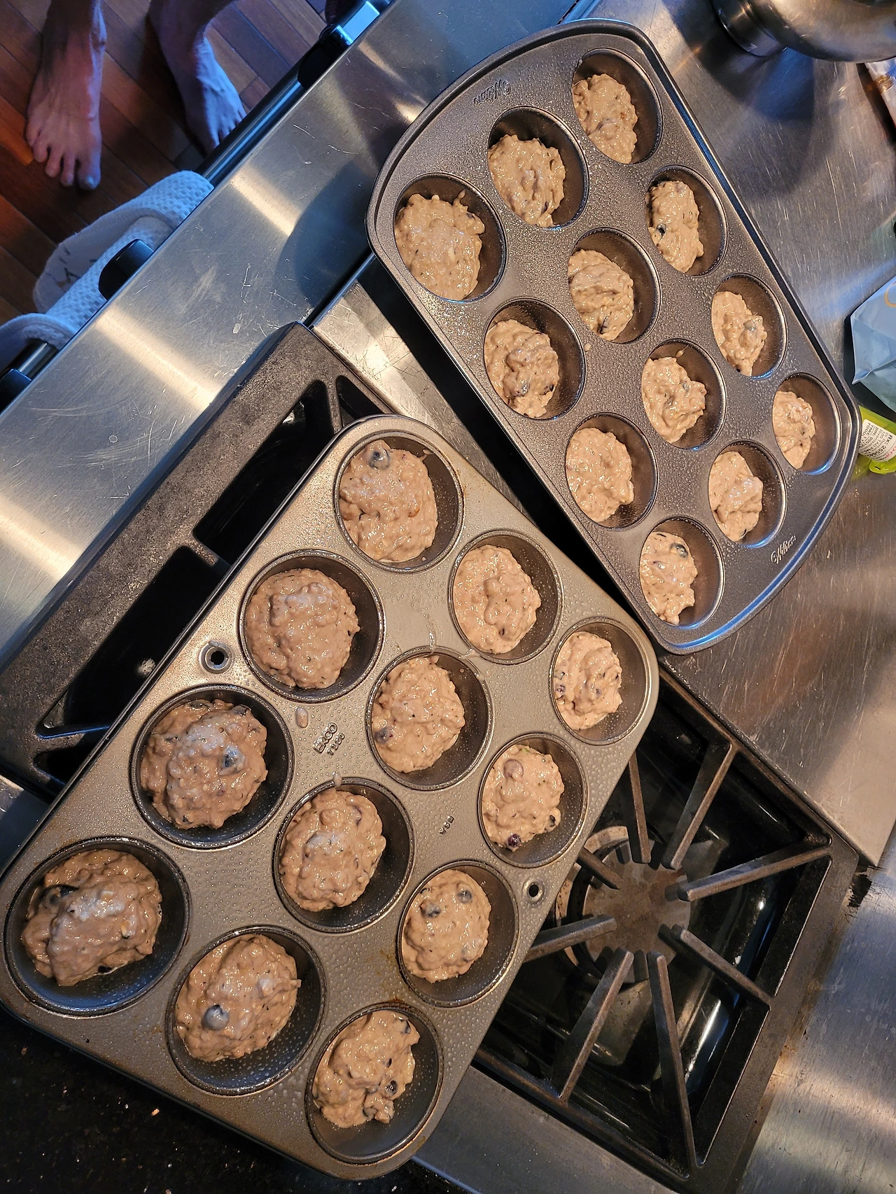 시아버지가 요리하실 때 거드는 척이라도 좀 하려고 얼쩡거리면 어김없이 음료와 간식을 받게 된다. 이날은 0.5도짜리 맥주와 갓구운 머핀을 받았다.