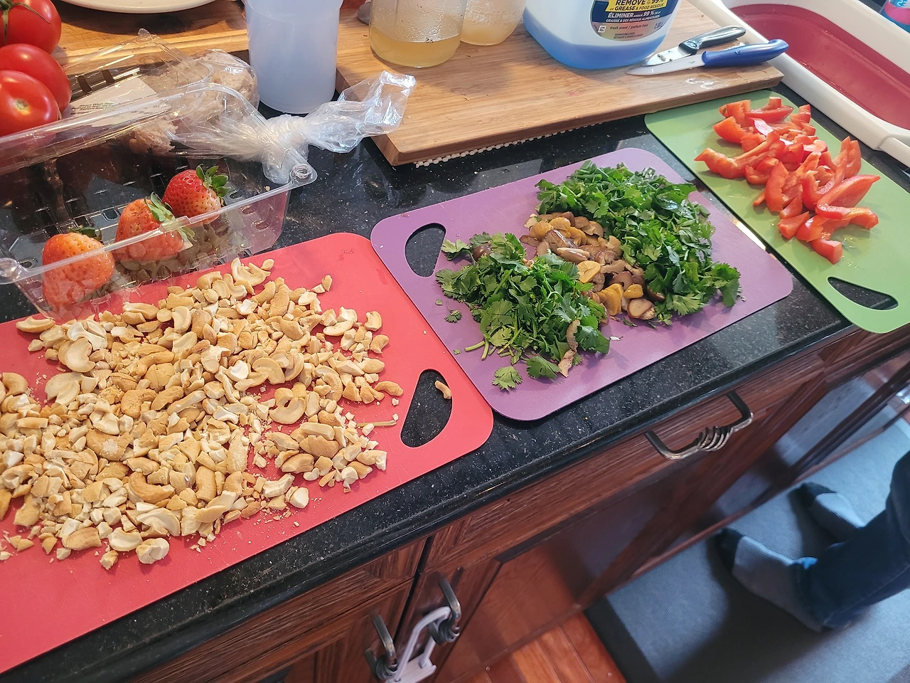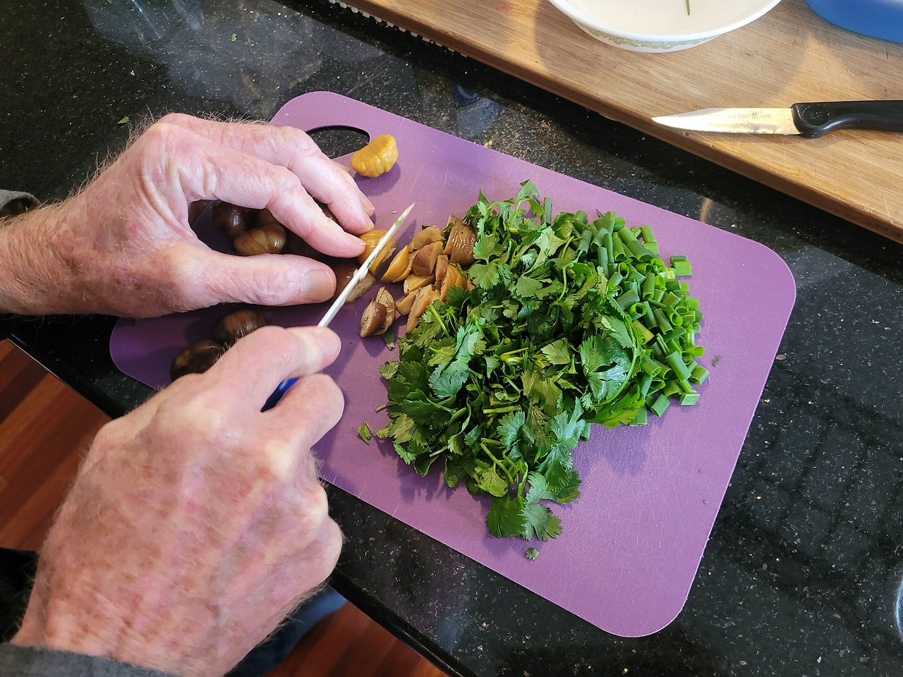 제가 지쳐 보일 때는 메뉴에 더 신경 쓰는 우리 시아버지. 오늘은 일본 초밥도 아니고, 중국 챠오미엔(볶음면)도 아니고 진짜로 한국 음식에 도전했습니다. 제가 일하는 동안 한인마트에 다녀왔다고 조금만 기다리라네요. 버터나 샐러리같은 재료야 그렇다치고 캐슈너트, 고수, 맛밤까지 조리대에 나와 있는 것이 불안하기야 했지만요. 어떤 모양이면 어떻습니까. 시아버지의 따뜻한 마음이 이렇게나 확실히 전해지는 것이 얼마나 기꺼운지요.