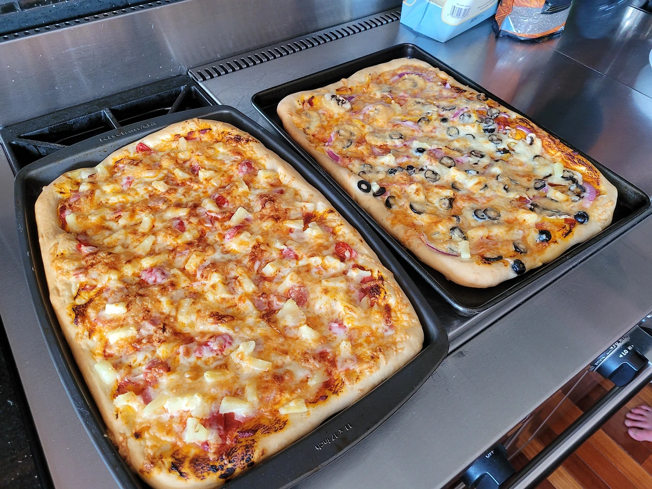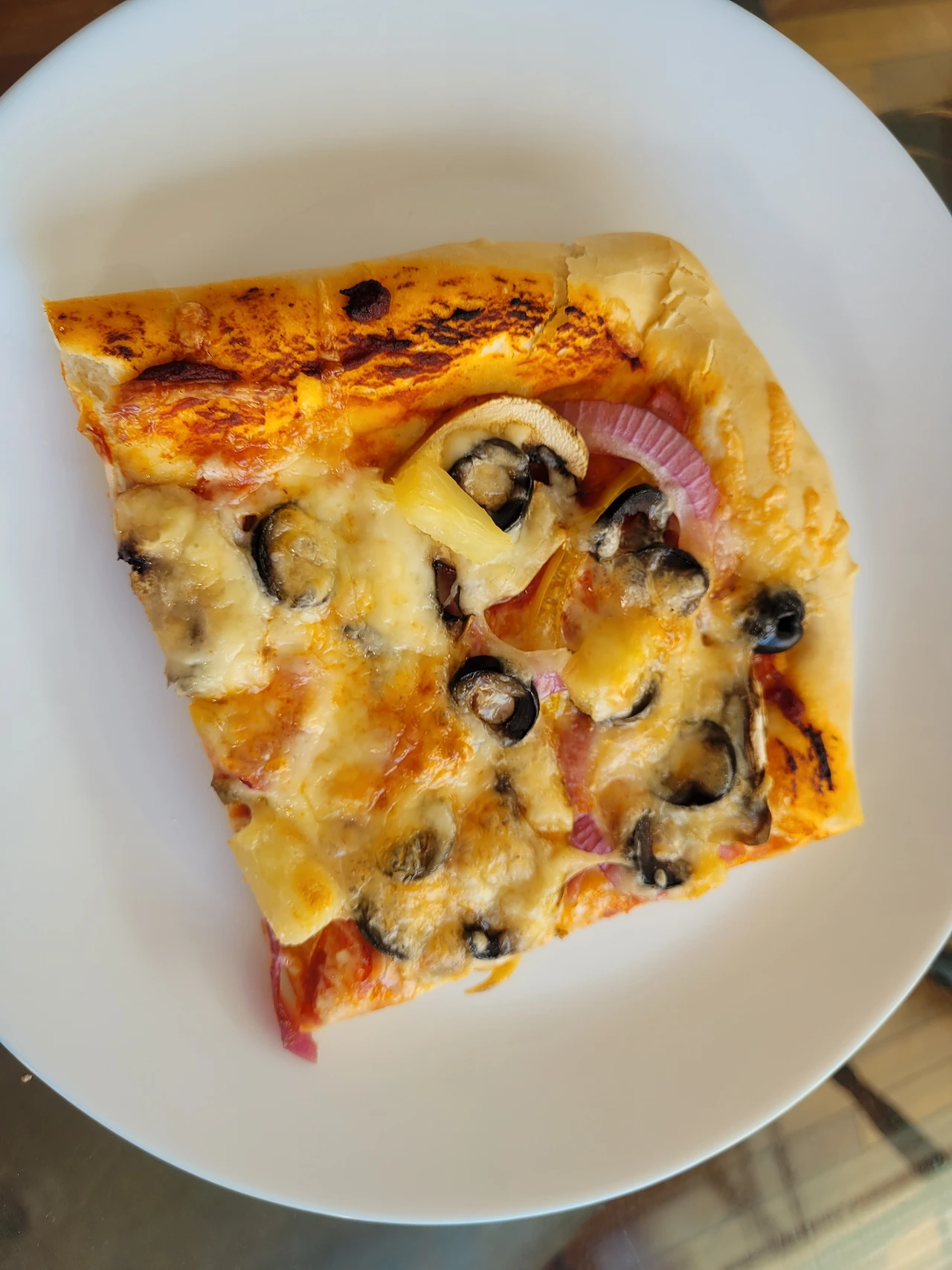 구획(?)에 따라 다른 피자는 가족 구성원의 취향을 고스란히 보여준다. 나는 양송이버섯과 블랙올리브가 많고 파인애플은 적은 피자를 받았다.
