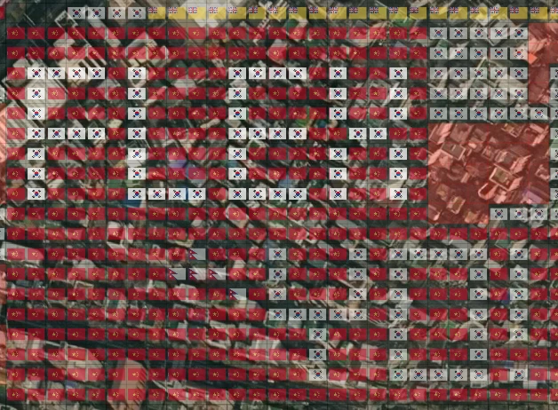 그러면서도 나도 위에 '독도 한국땅' 외에 다른 레터링 픽셀 아트에도 살짝 참여하긴 했다. 어스2 관련해서 정보를 얻으려고 검색하다 우연히 알게 된 동문이 아직 땅값이 저렴한 시리아 쪽에 우리 대학 약자를 새기려고 하는 프로젝트를 발견하고 몰래 참여한 것이다.