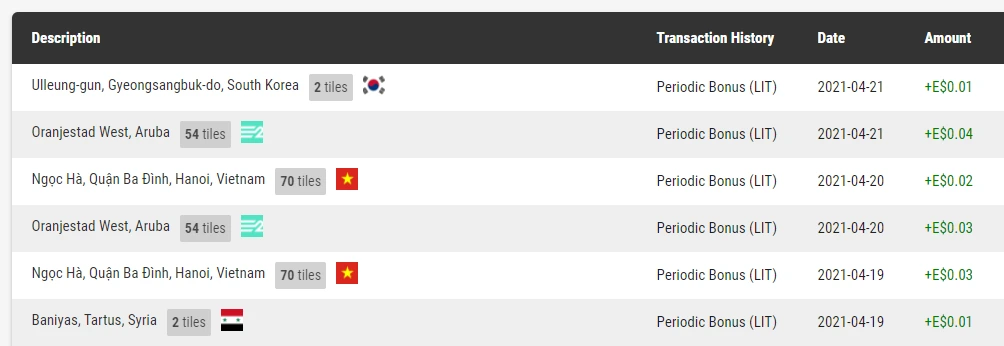 사실 LIT 뿐만 아니라, 이렇게 어스2의 가상 토지를 구매해서 보유하고 있다 보면 저절로 수익률이 오르긴 한다. 해당 지역의 토지가 거래될수록 땅의 가치가 높아지기 때문이다.