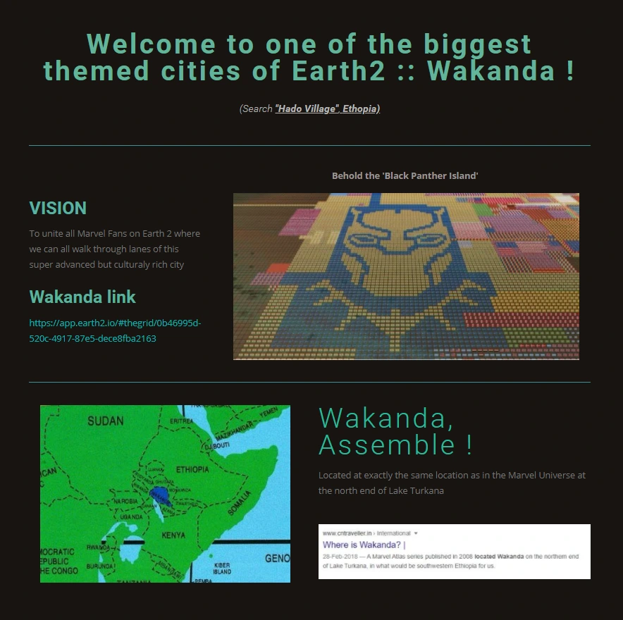 와칸다 포레버! (출처 : https://www.earth2wakanda.com/)