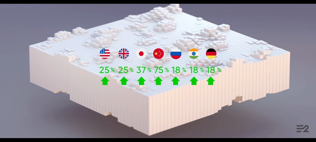Earth2 최근 일주일간 나라별 땅값 변화