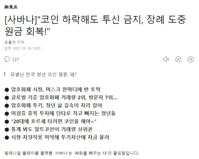 기자님이 그토록 정성스레 썼던 기사를 통해 던지고 싶었던 메시지가 고작 '존버 하면 오르니까 자살하지 말고 버텨라'였나요? 그걸 위해 그 긴 시간을 들여서 저 기사를 쓰신 건가요?