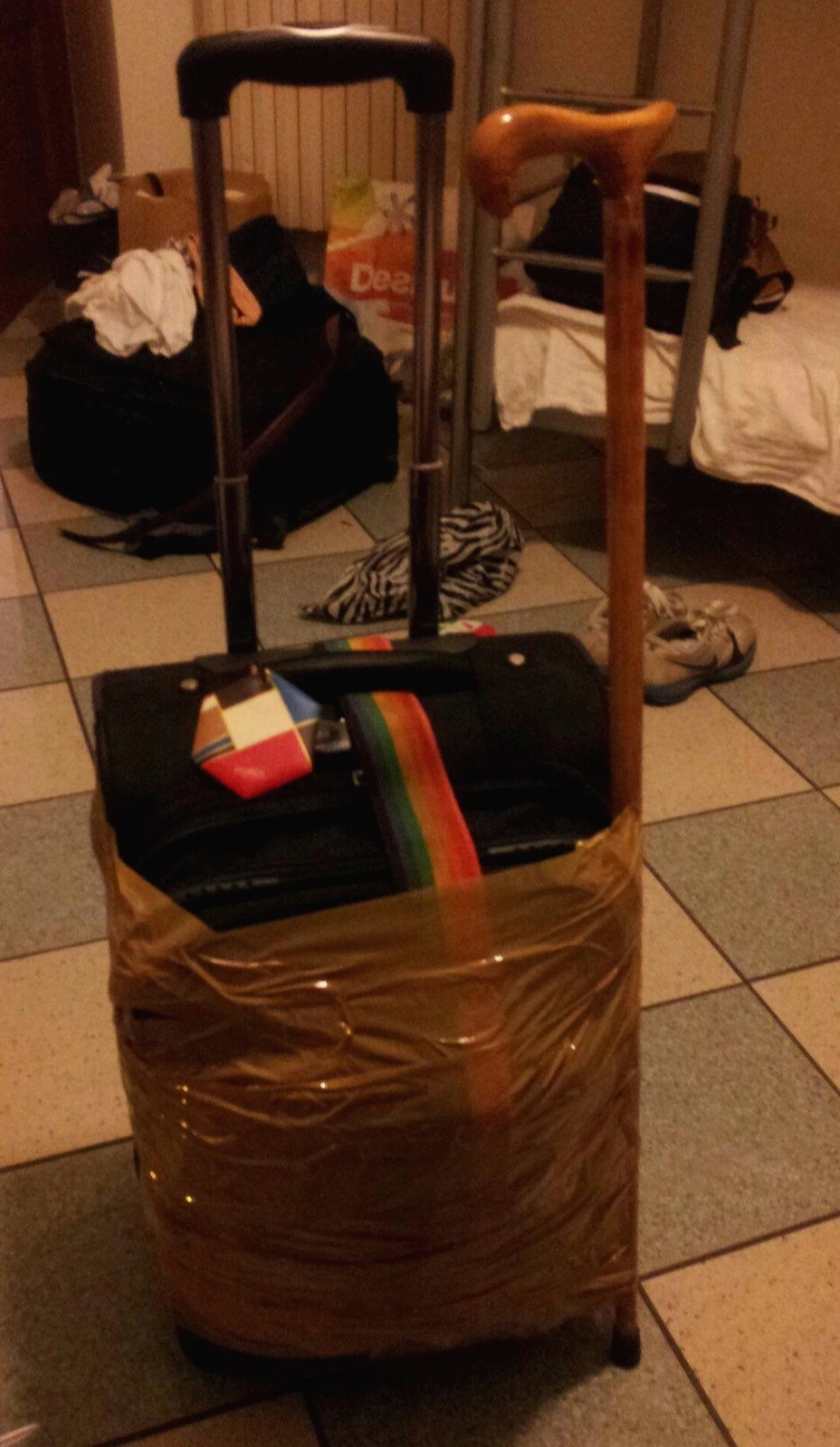 당시 캐리어에 꽁꽁 묶었던 지팡이...