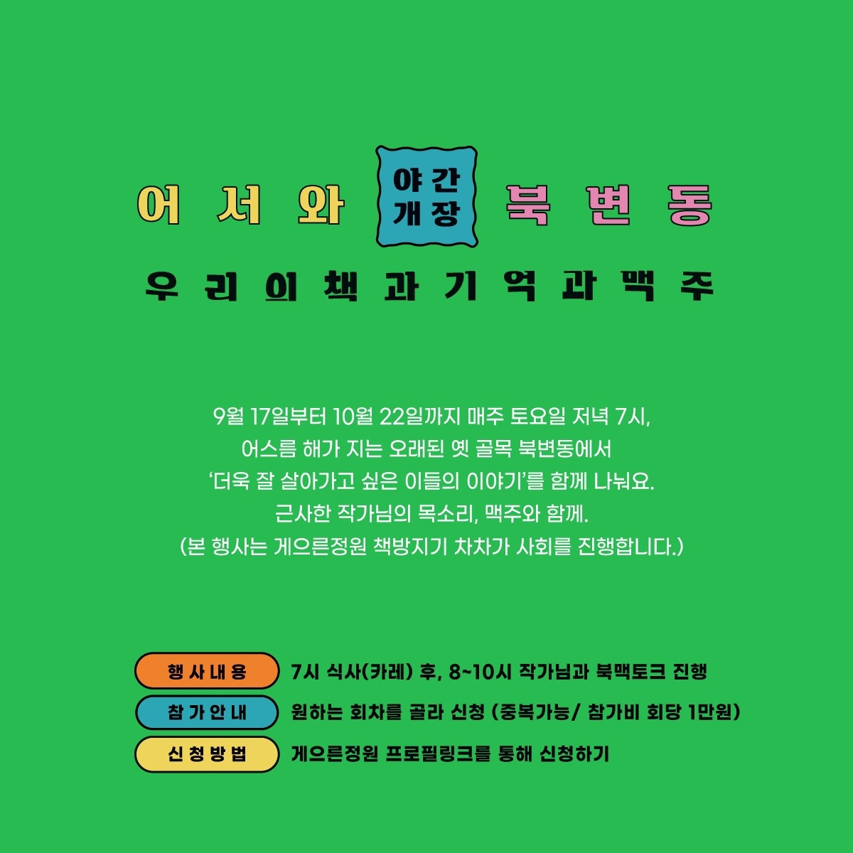 9월 24일, 게으른 정원 북맥토크에서 만나요!