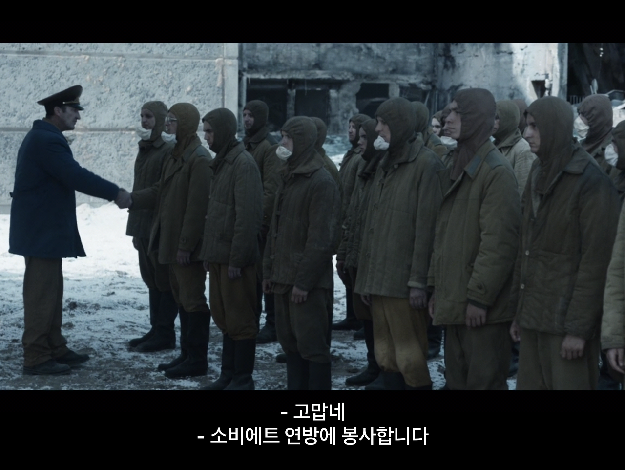 나는 이것이 수많은 인간 군상이 등장하는 만큼, 개개인의 감정 묘사에 초점을 맞춰서 5화의 짧은 러닝타임을 낭비하지 않기 위해 과감히 생략한 드라마적인 기법이라고 생각했는데, 놀랍게도 스베틀라나 알렉시예비치의 <체르노빌의 목소리>를 읽으며 실제 역사 속 체르노빌 참사의 수습 역시 이와 같은 수많은 '덤덤하고 의연한 희생'에 상당 부분 기인했다는 것을 알게 되었다.