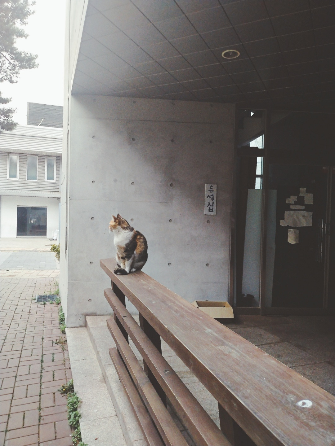 2년 전, 산책하던 길에 한 건물의 주차장에서 다른 고양이들과 함께 있는 너를 처음 만났지. 너는 그중에 가장 순한 성격의 고양이였어. 무척 여유로워 보였고. (나중에서야 알게 됐지만, 네가 그중에서 제일 나이가 많았더라고.)